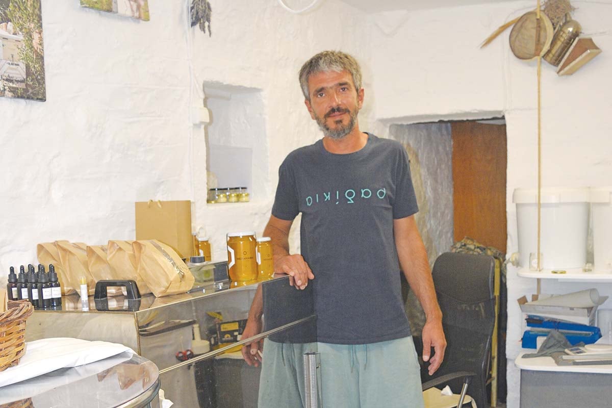 «Αυτή η θεραπεία δεν αφήνει κατάλοιπα. Εχω δει αποτέλεσμα με τις επιλογές αυτές και τις συνεχίζω» μας λέει. Παράλληλα, ασχολείται με τα αυτοφυή βότανα που βρίθουν στο νησί της Ανάφης, ενώ στα δικά του μελισσοκομεία έχει φυτέψει βότανα που συλλέγει, συσκευάζει και διαθέτει μαζί με το μέλι και άλλα προϊόντα της κυψέλης.