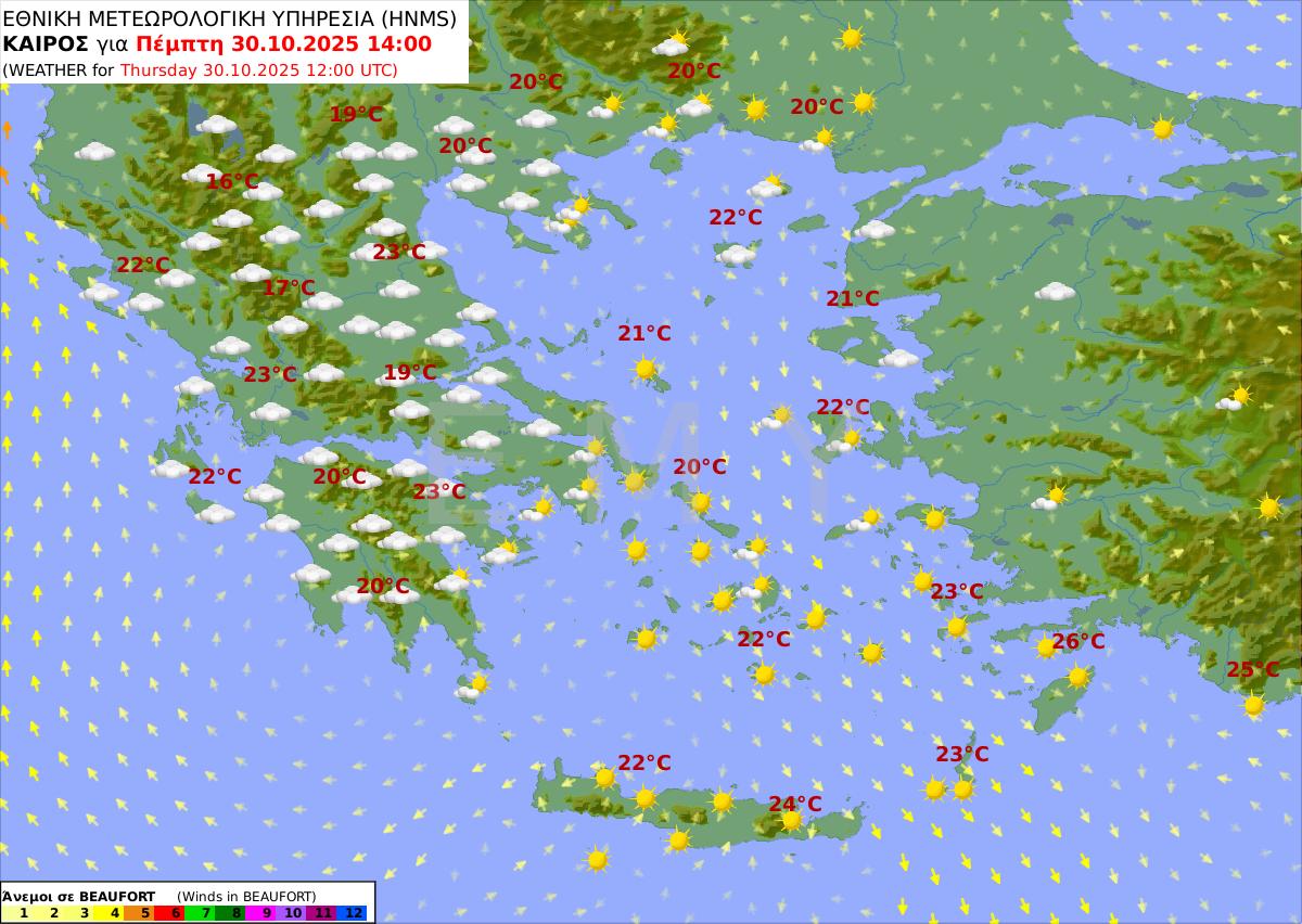 Καλές καιρικές συνθήκες αναμένονται και σήμερα, Πέμπτη 30 Οκτωβρίου, με ανοιξιάτικο καιρό, ήπιες θερμοκρασίες και απουσία βροχοπτώσεων στις περισσότερες περιοχές της χώρας.