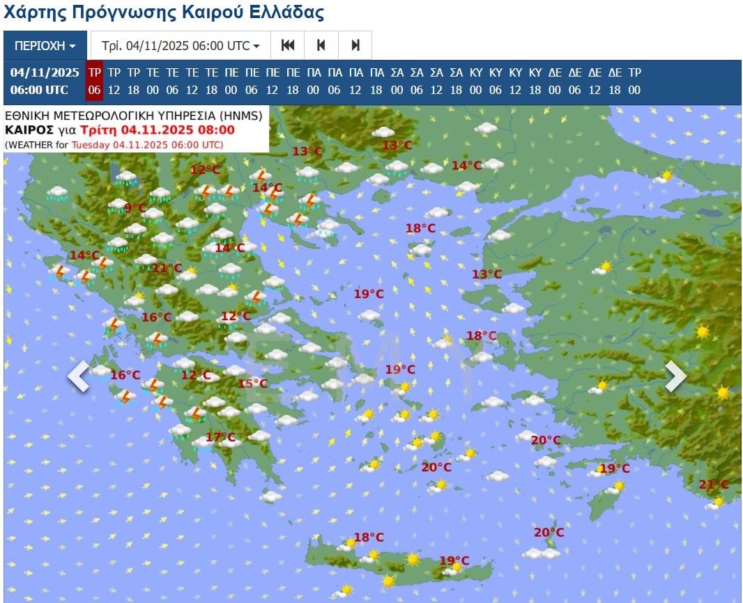 «Βροχές και καταιγίδες θα εκδηλωθούν στο μεγαλύτερο μέρος της χώρας. Τα φαινόμενα θα είναι κατά τόπους ισχυρά: