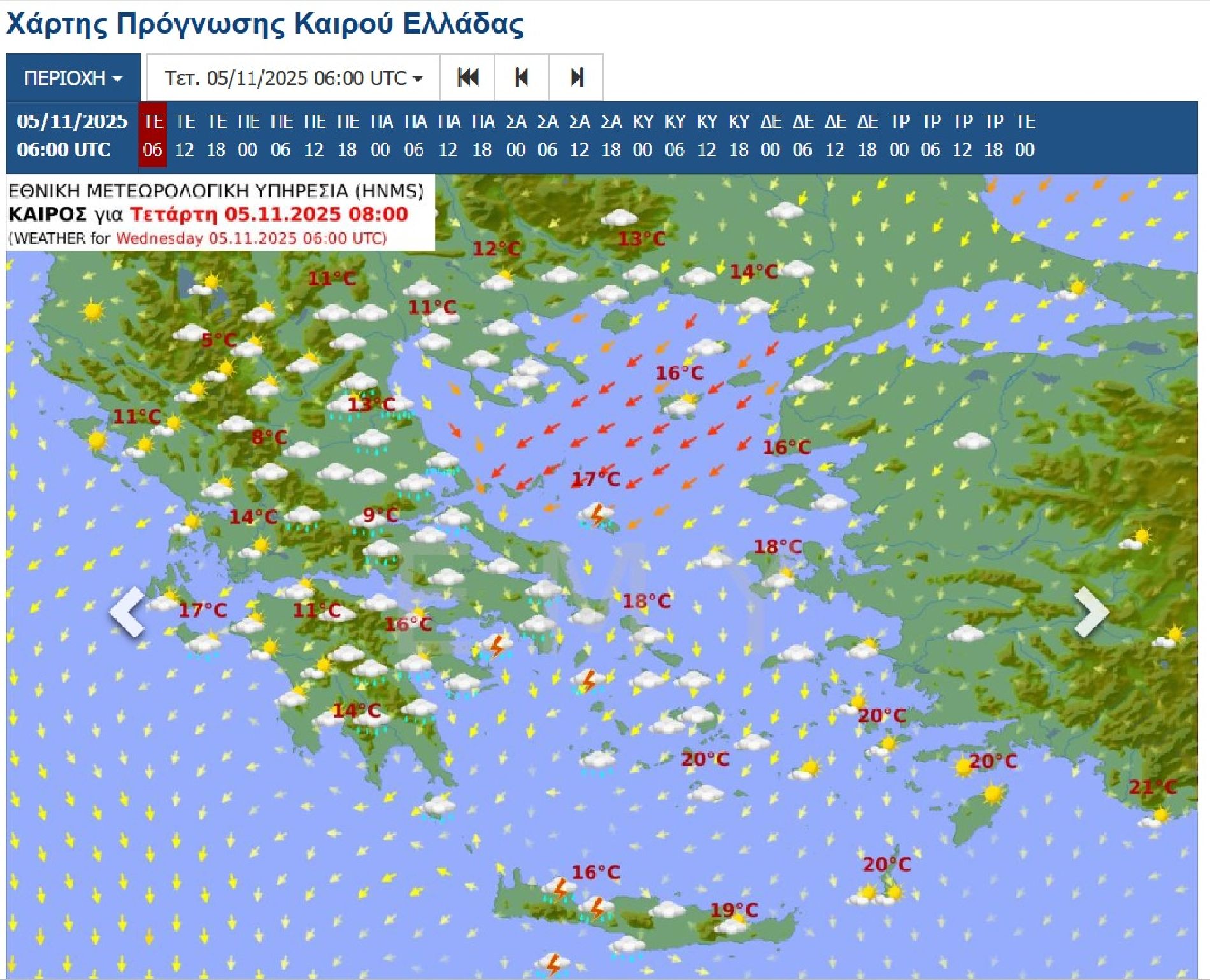 Θερμοκρασία: Από 11 έως 17 βαθμούς Κελσίου. Στη δυτική Μακεδονία 4 με 5 βαθμούς χαμηλότερη.