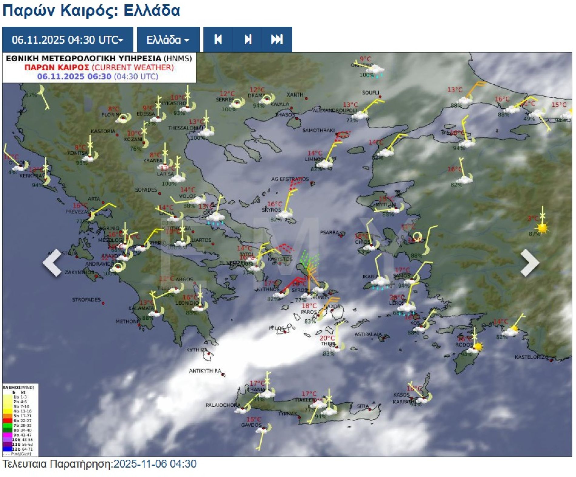 Σε τροχιά διαδοχικών κακοκαιριών εισέρχεται η χώρα, με το σκηνικό του καιρού να γίνεται ολοένα και πιο φθινοπωρινό. Το βαρομετρικό χαμηλό που επηρεάζει ήδη την Ελλάδα μετατοπίζεται νοτιότερα, δίνοντας βροχές και καταιγίδες κυρίως σε Κυκλάδες και Κρήτη, ενώ η υπόλοιπη χώρα βιώνει συννεφιά και πτώση της θερμοκρασίας.
