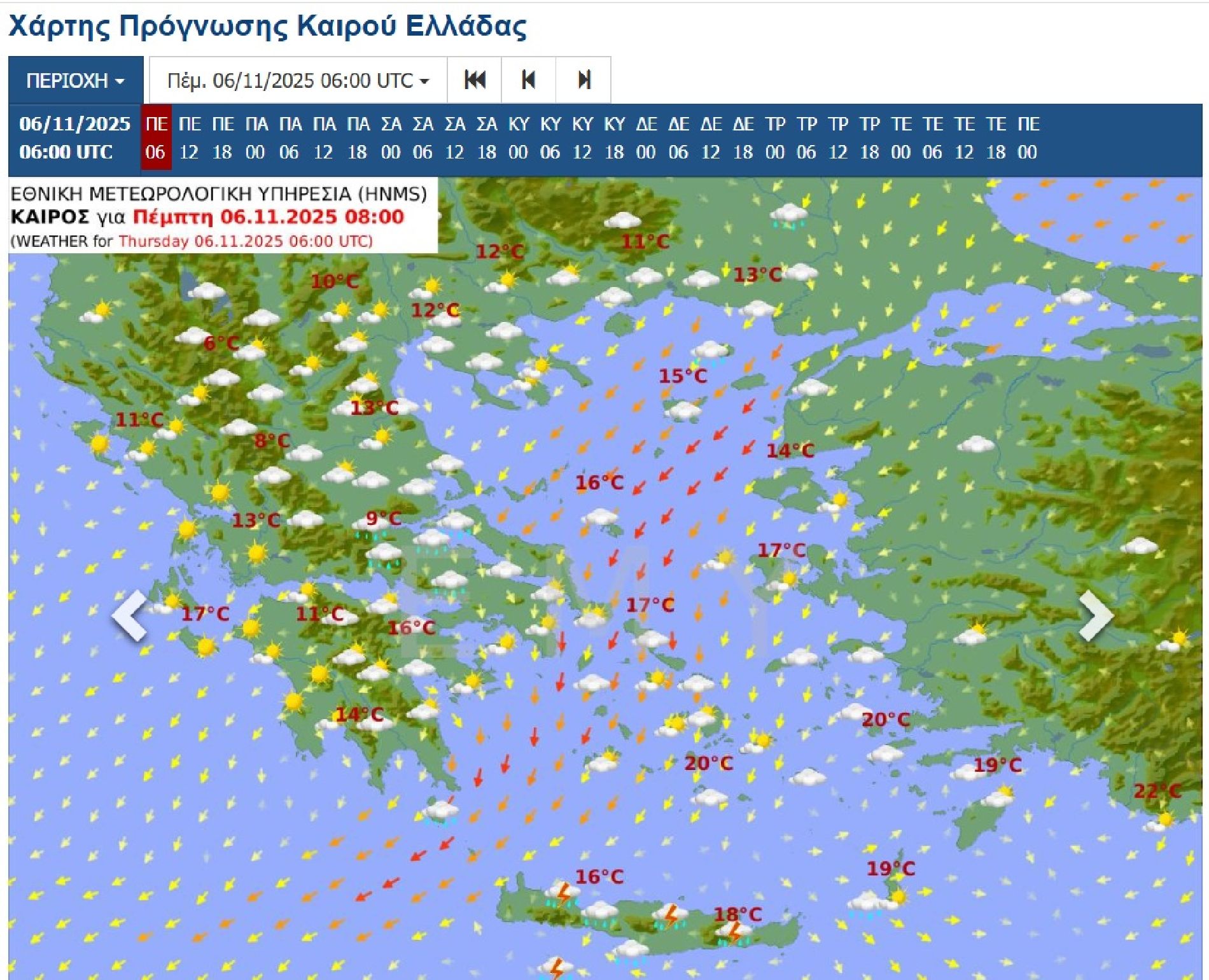 Θερμοκρασία: Από 11 έως 17 βαθμούς Κελσίου. Στη δυτική Μακεδονία 4 με 5 βαθμούς χαμηλότερη.