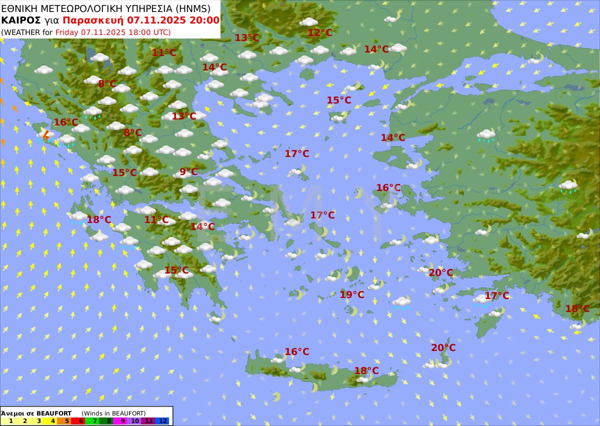 Παρασκευή, 7 Νοεμβρίου 2025 – Αναλυτική πρόγνωση από την ΕΜΥ