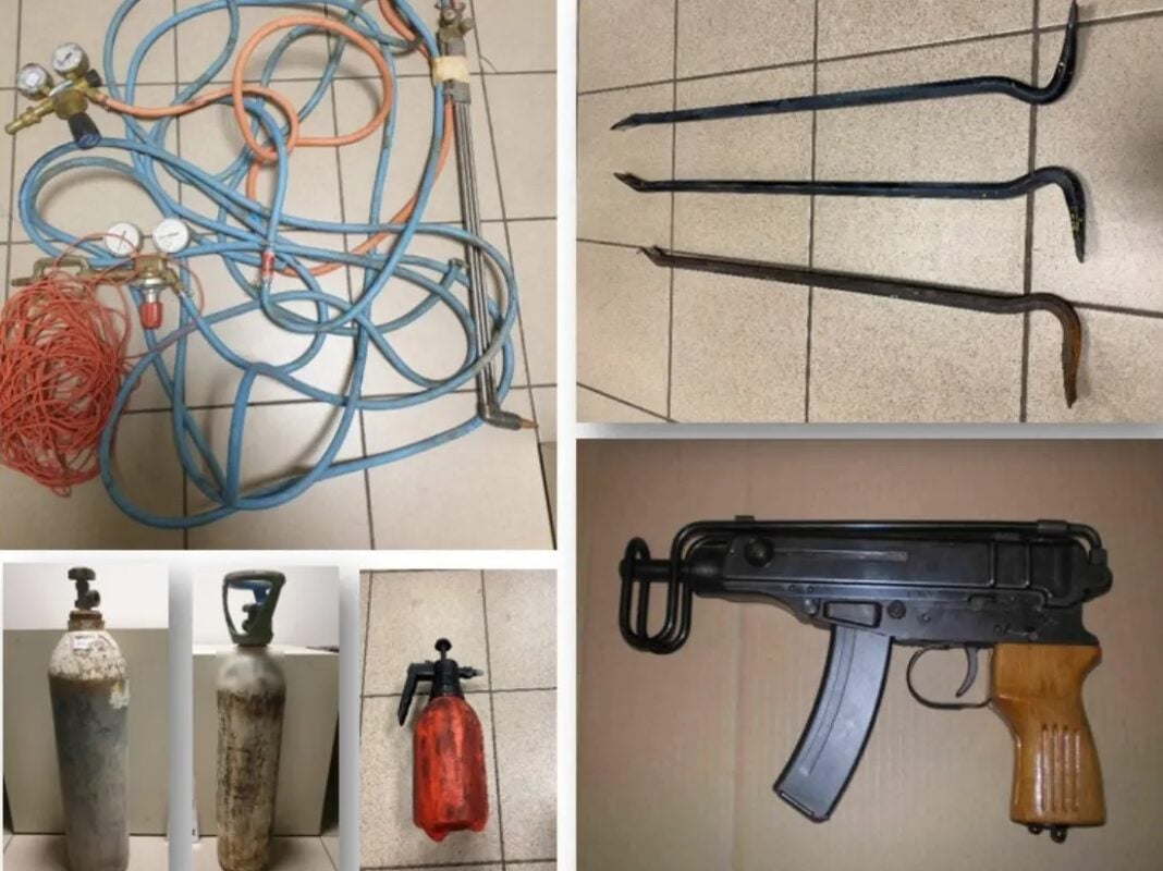 Για να πετύχουν το σκοπό τους είχαν προμηθευτεί ειδικά εργαλεία (σφυριά, βαριοπούλες, κατσαβίδια, φακούς κεφαλής, κ.λπ) και ρουχισμό (φόρμες-στολές, γάντια εργασίας, κουκούλες τύπου fullface, κ.λπ), καθώς και ειδικό εξοπλισμό διάρρηξης (αυτοσχέδιες μεταλλικές λαβίδες, εκρηκτικές ύλες και φορείς εκρηκτικών υλών, ελάσματα, μανόμετρα, φιάλες που περιείχαν εύφλεκτο αέριο για τη μέθοδο της οξυγονοκοπής ή κοπής πλάσματος).