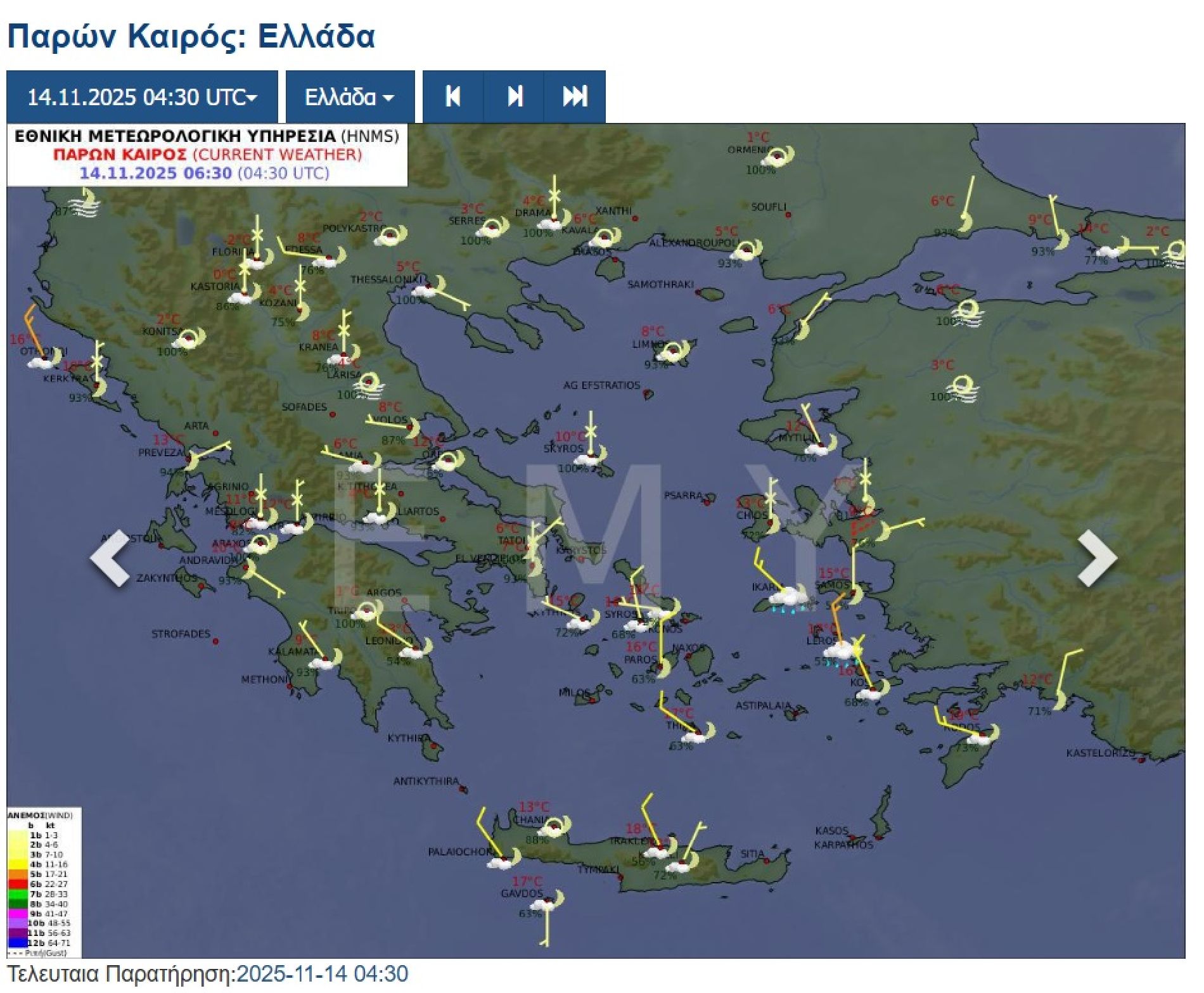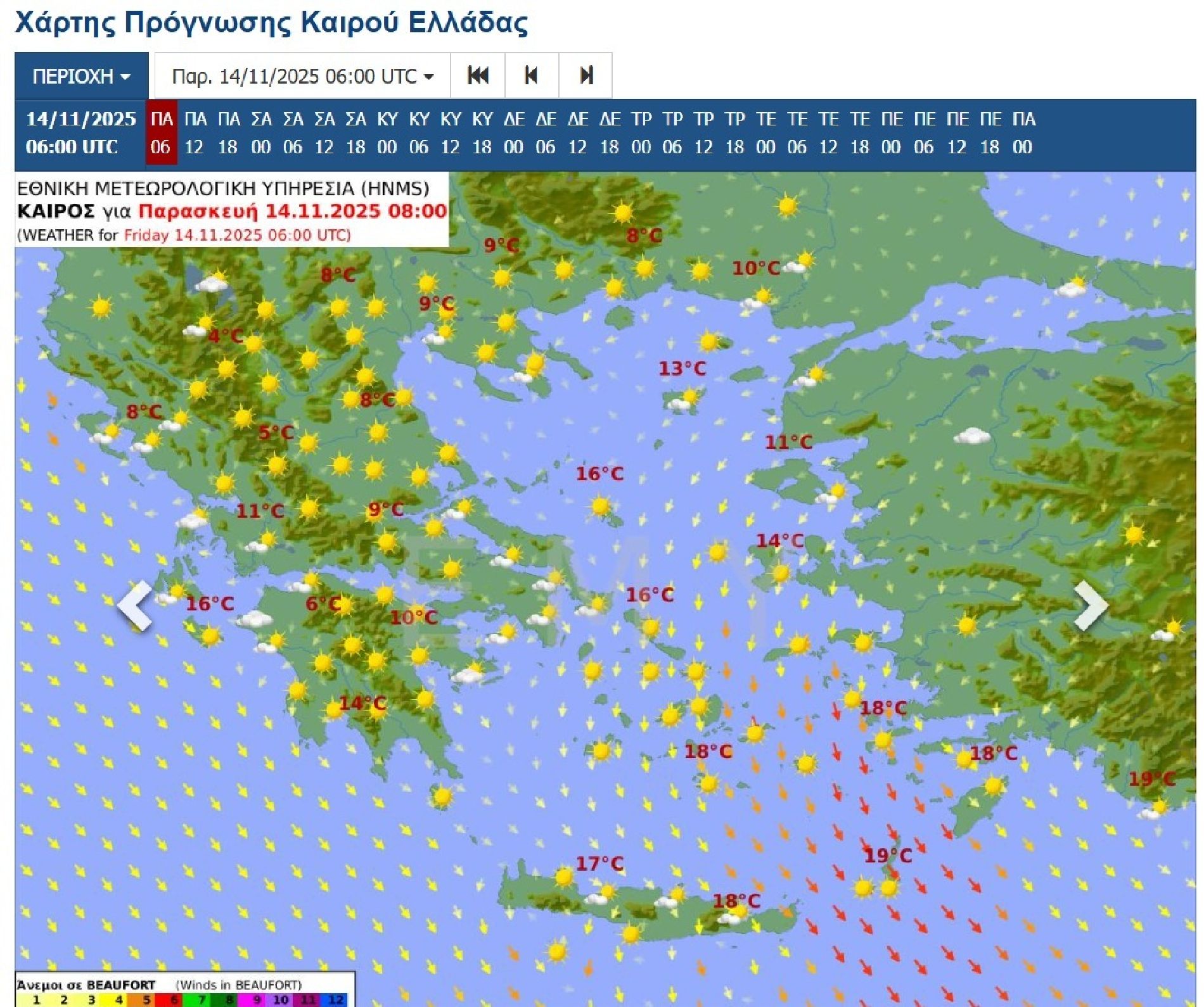 Θερμοκρασία: Από 06 έως 19 βαθμούς Κελσίου. Στη δυτική Μακεδονία 3 με 4 βαθμούς χαμηλότερη.