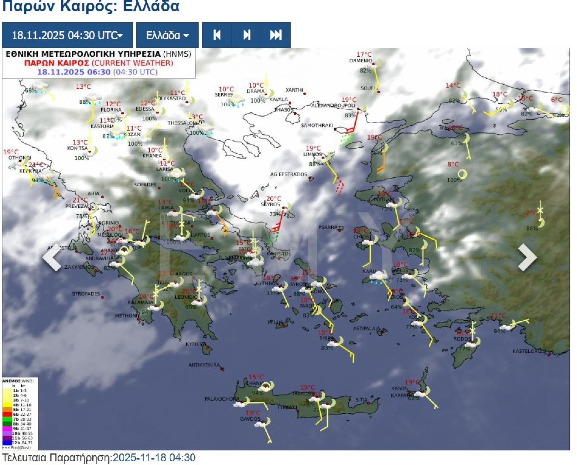 Καιρός: Στη Θεσσαλία νεφώσεις με τοπικές βροχές και μεμονωμένες καταιγίδες κυρίως στα δυτικά τμήματα. Στις υπόλοιπες περιοχές αραιές νεφώσεις κατά τόπους και κατά διαστήματα πιο πυκνές με πιθανότητα για ασθενών τοπικών βροχών στη νότια Εύβοια.