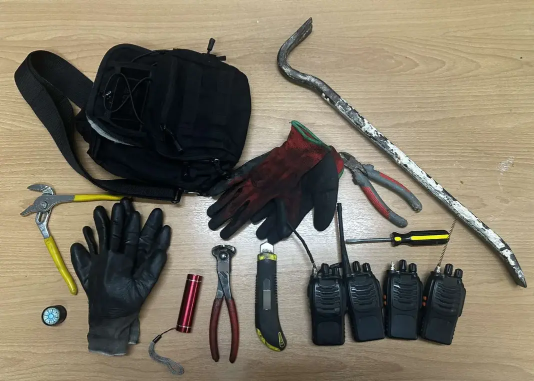 διαρρηκτικά εργαλεία (κατσαβίδι, κόφτης, πένσα, κάβουρας κ.α.), 4 ασύρματοι καθώς και