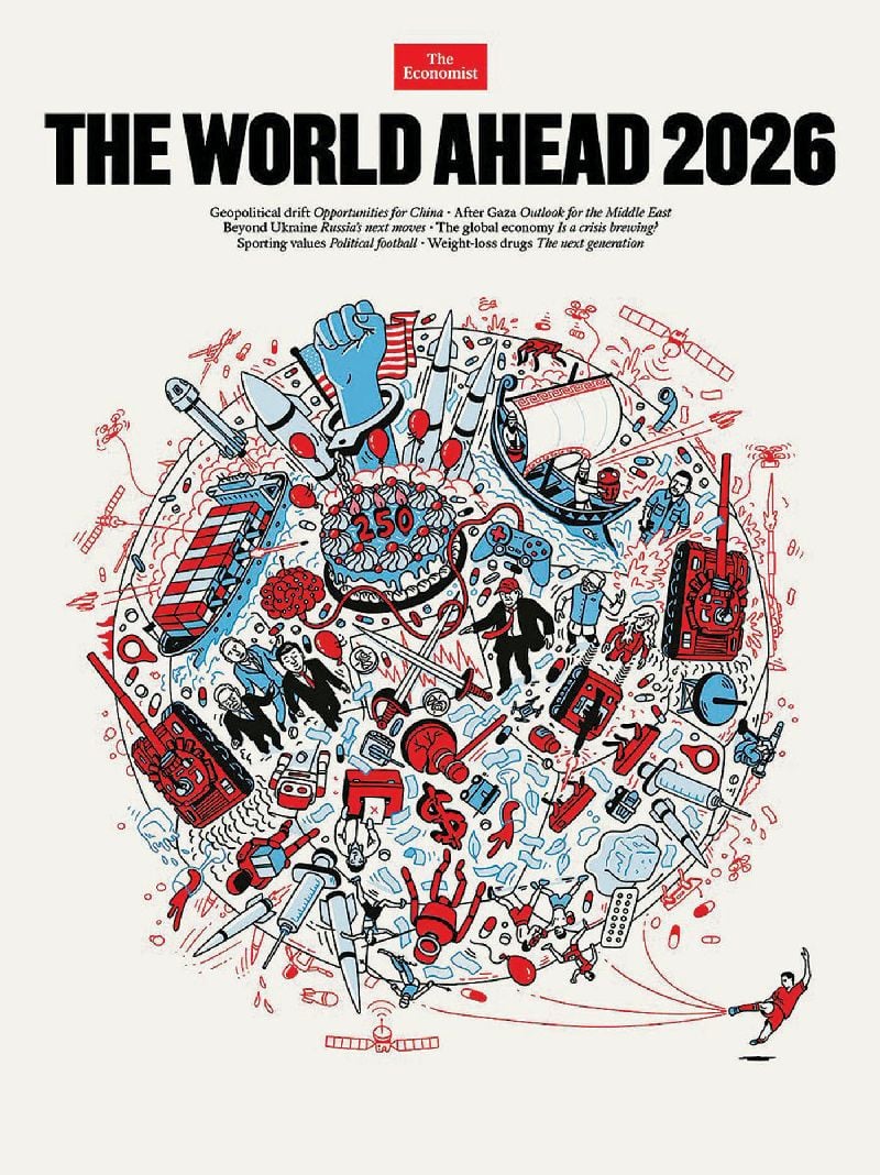 Πριν από λίγες ημέρες το βρετανικό περιοδικό «The Economist», γνωστό για τα «προφητικά» του εξώφυλλα, στην ειδική ετήσια έκδοσή του The World Ahead αποκάλυψε το εξώφυλλό του για το 2026, κάνοντας κάποιους να αναρωτιούνται αν πρόκειται για ένα εικονογραφημένο αίνιγμα ή για το ημερολόγιο της παγκόσμιας ελίτ.