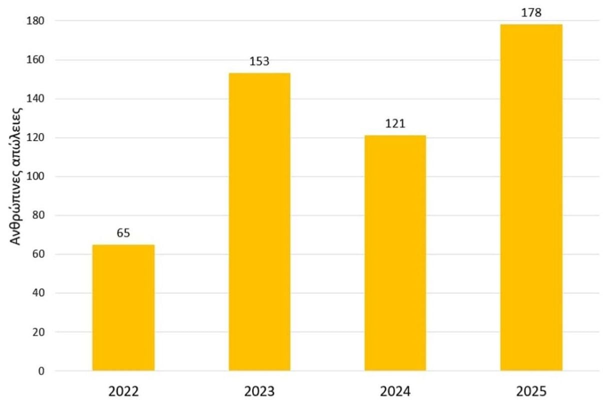 Όπως ανέφερε και το ρεπορτάζ του Νίκου Φωτόπουλου στην εφημερίδα «Θεσσαλονίκη» της 29ης Νοεμβρίου 2025 «στη χώρα που φιλοδοξεί να αυτοπαρουσιάζεται από την κυβέρνηση ως «εργασιακό success story», εξελίσσεται μια από τις πιο σκληρές πραγματικότητες της σύγχρονης ευρωπαϊκής αγοράς εργασίας: Η σταθερή κλιμάκωση των εργατικών ατυχημάτων και η εκτόξευση των θανάτων στους χώρους δουλειάς.