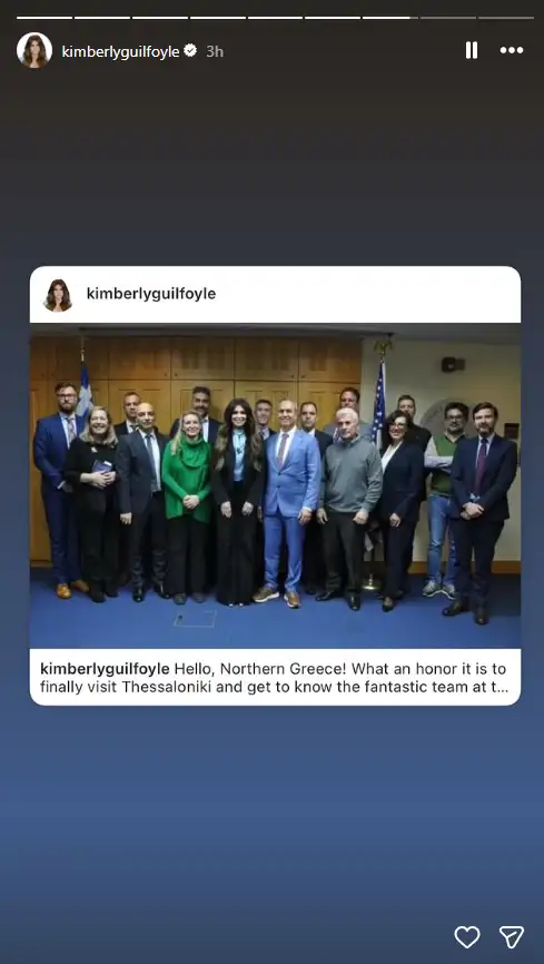 «Γεια σου Βόρεια Ελλάδα! Τι τιμή που επισκέπτομαι τελικά τη Θεσσαλονίκη…», έγραψε, ανάμεσα σε άλλα, η Κίμπερλι Γκιλφόιλ στη λεζάντα της φωτογραφίας που «ανέβασε» στο προφίλ της στο Instagram το απόγευμα της Παρασκευής (05.12.2025):