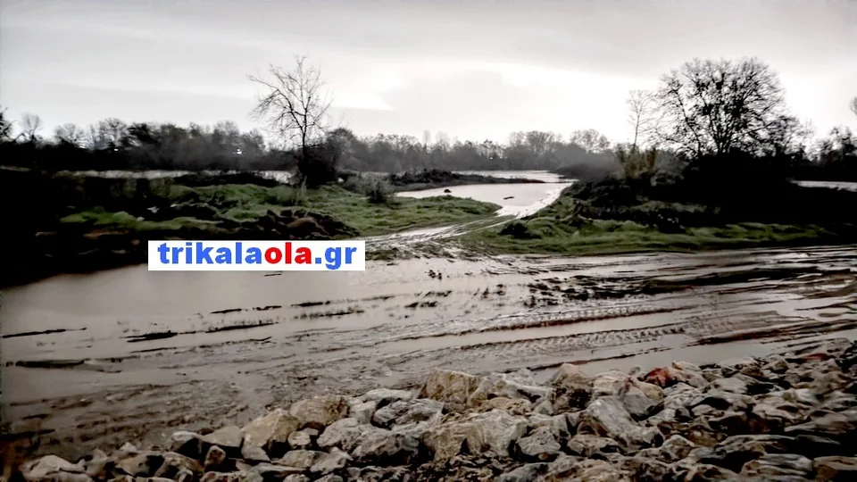 Ο Πηνειός ποταμός κατεβάζοντας τεράστιο όγκο νερού από την κακοκαιρία, έχει υπερχειλίσει από την βασική κοίτη εντός των μεγάλων αναχωμάτων του Βαλομανδρίου και των Ρογκίων και διαχέεται στα χωράφια.