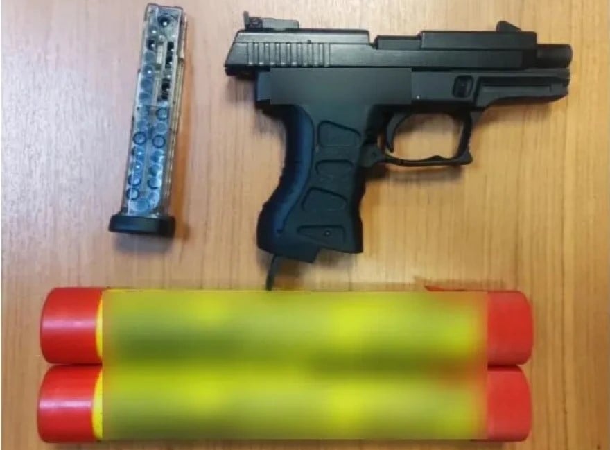 Σε αστυνομική έρευνα που έγινε στο σπίτι του, έπειτα από ληροφορίες, εντοπίστηκαν ένα αεροβόλο πιστόλι, που λειτουργεί με αμπούλες-φιαλίδια διοξειδίου του άνθρακα, γεμιστήρας με 14 μεταλλικά σφαιρίδια, καθώς και δύο ναυτικές φωτοβολίδες αλεξίπτωτου, όπως αναφέρεται σε ανακοίνωση της ΕΛ.ΑΣ.