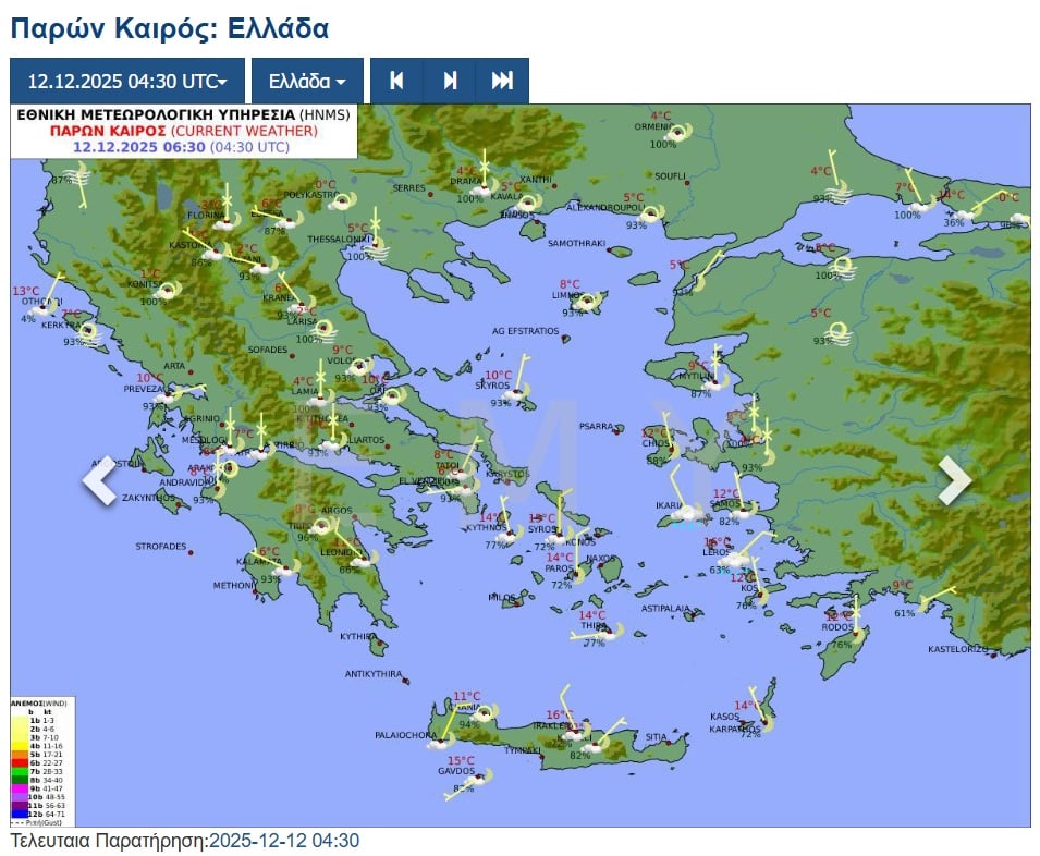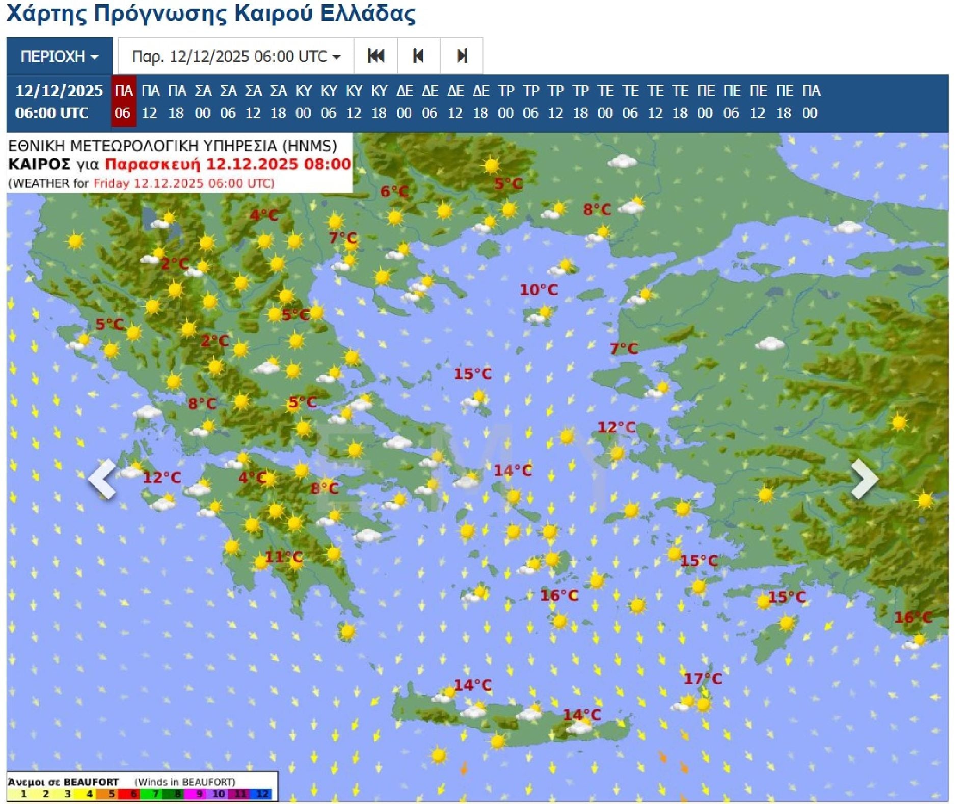 Θερμοκρασία: Από 04 έως 16 βαθμούς Κελσίου. Στη δυτική Μακεδονία η ελάχιστη 3 με 4 βαθμούς χαμηλότερη.