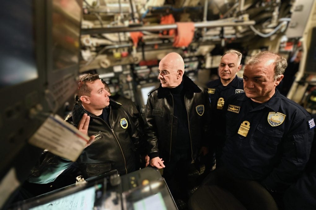 Τη δοκιμαστική βολή της νέας τορπίλης «SeaHake mod4» κατά στόχου επιφανείας, παρακολούθησε χθες, Πέμπτη 11 Δεκεμβρίου, από το υποβρύχιο «Πιπίνος» τύπου 214 του Πολεμικού Ναυτικού, ο υπουργός Εθνικής Άμυνας Νίκος Δένδιας.