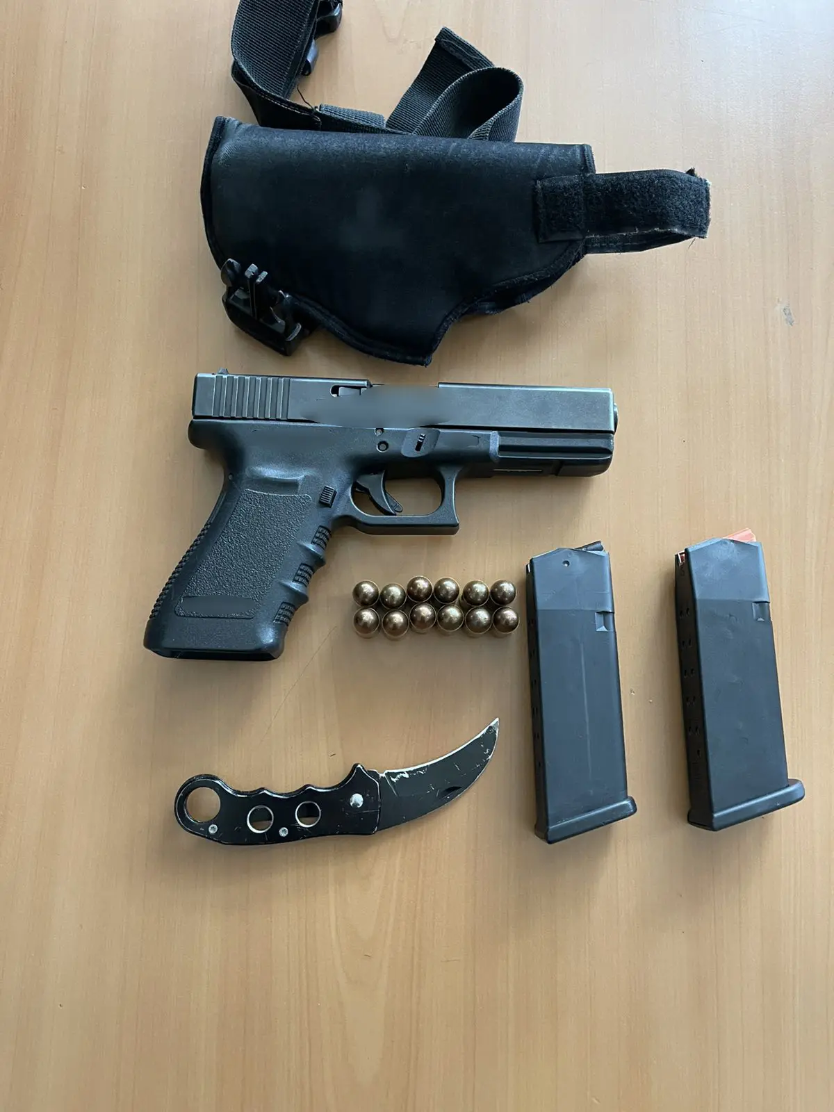 Συγκεκριμένα, οι αστυνομικοί της ΔΙ.ΑΣ. βρήκαν στην κατοχή του 44χρονου συλληφθέντα αλλοδαπού στα Πετράλωνα, μεταξύ άλλων, δύο γεμιστήρες με 12 φυσίγγια και αναδιπλούμενο μαχαίρι.