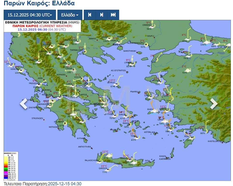 Θερμοκρασία: Από 01 έως 15 βαθμούς Κελσίου. Στη δυτική Μακεδονία 3 με 4 βαθμούς χαμηλότερη.