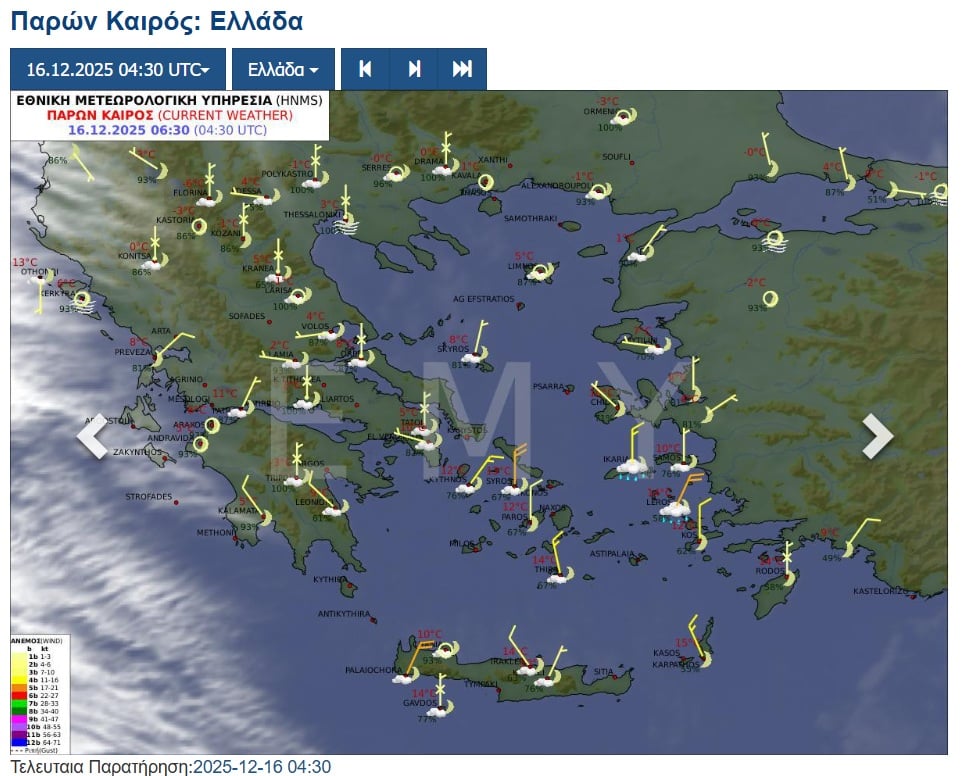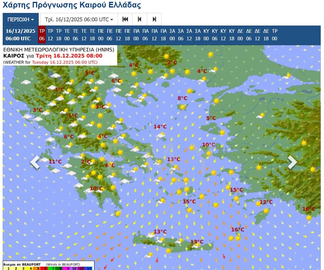 Σταθερές θερμοκρασίες και τοπικές ομίχλες χαρακτηρίζουν τον καιρό σήμερα, Τρίτη 16 Δεκεμβρίου, με τους βοριάδες να φτάνουν τοπικά τα 6 μποφόρ στο Αιγαίο.