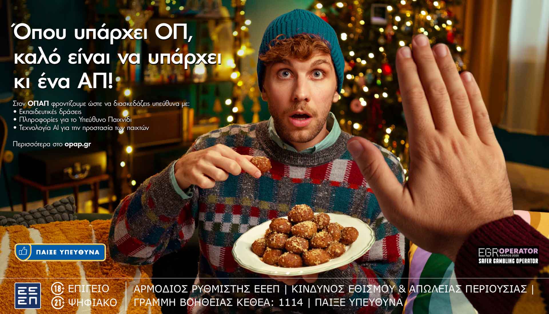 Τη νέα καμπάνια του για το Υπεύθυνο Παιχνίδι λάνσαρε ο ΟΠΑΠ, μέλος της Allwyn, με αφορμή την Χριστουγεννιάτικη περίοδο, που μόλις έχει ξεκινήσει. Με νεανική, σύγχρονη γλώσσα και αισθητική, η καμπάνια τοποθετεί το Υπεύθυνο Παιχνίδι και την ασφάλεια των παικτών στο επίκεντρο της διασκέδασης.
