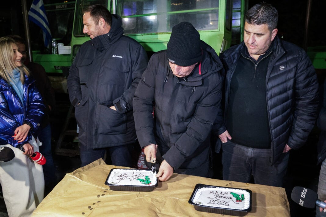 Στη Δυτική Μακεδονία, με το δριμύ ψύχος και θερμοκρασίες κάτω από το μηδέν οι αγρότες έκοψαν ακόμη και δεύτερη βασιλόπιτα για φίλους και υποστηρικτές από το μπλόκο του Φιλώτα και το τελωνείο της Νίκης.