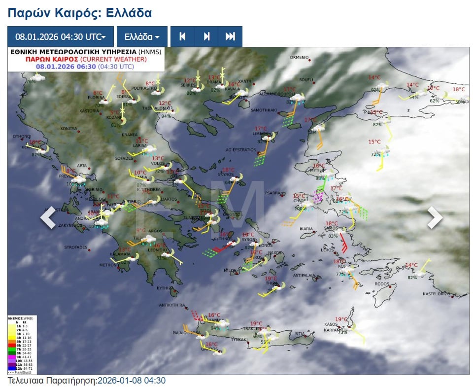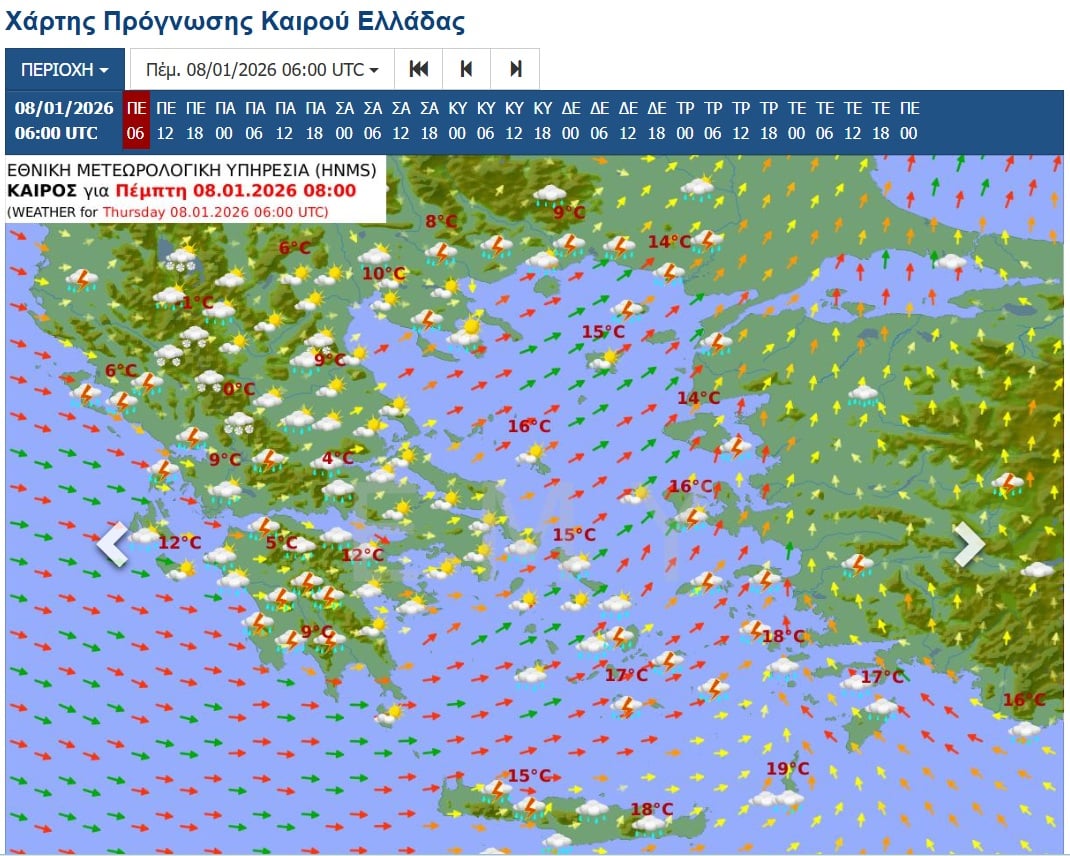 Επιδείνωση παρουσιάζει ο καιρός σε μεγάλο μέρος της χώρας, με κατά τόπους ισχυρές βροχές, καταιγίδες και χιονοπτώσεις. Τα φαινόμενα εστιάζονται κυρίως στα δυτικά και τα βορειοανατολικά τμήματα, ενώ ισχυροί άνεμοι και σταδιακή πτώση της θερμοκρασίας συνθέτουν το σκηνικό, με παγετό να αναμένεται από τις βραδινές ώρες στα βόρεια ηπειρωτικά.