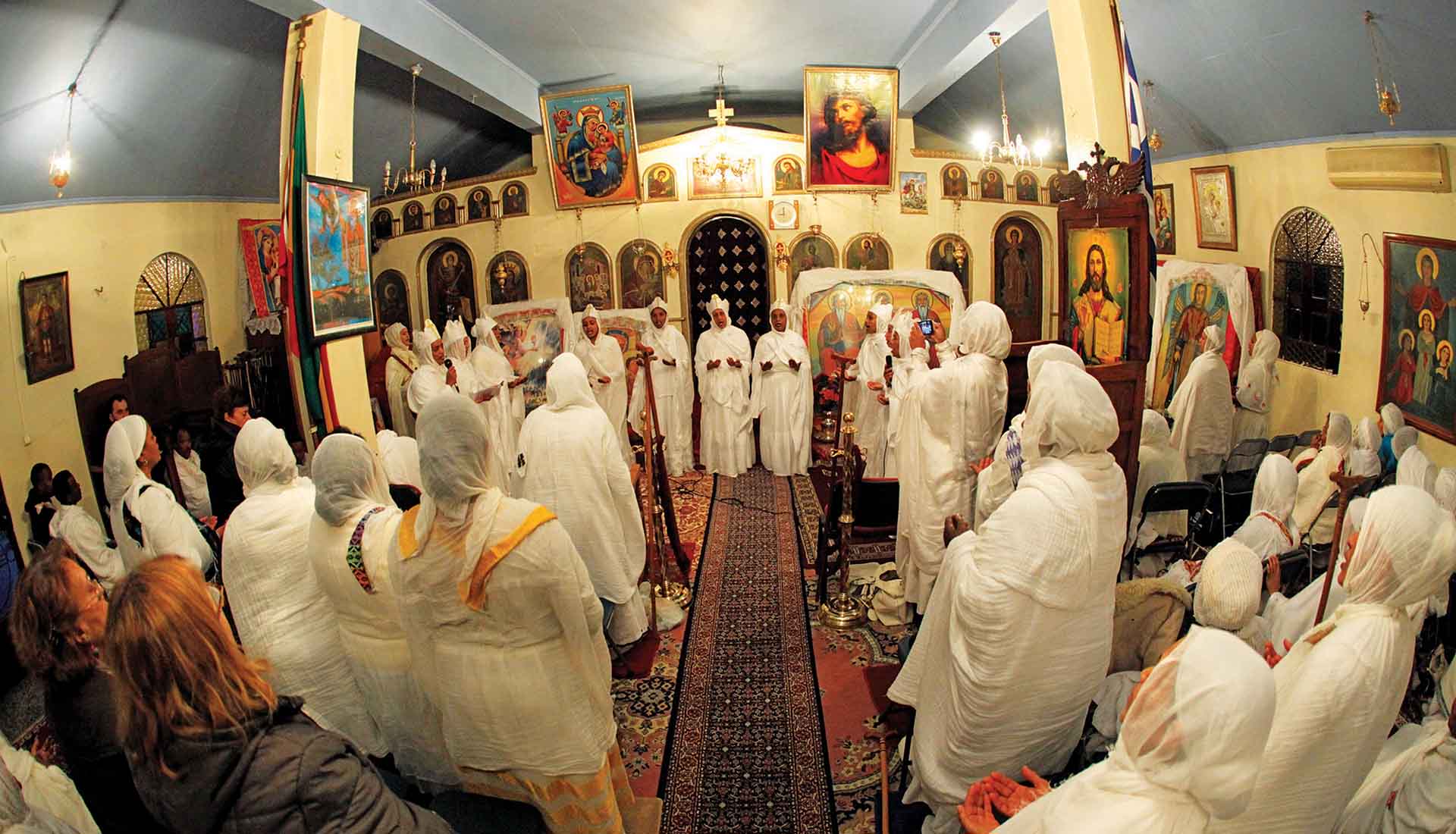 Σε μια ήσυχη γωνιά της περιοχής του Πολυγώνου η αιθιοπική κοινότητα της Αθήνας έδωσε το δικό της ξεχωριστό στίγμα στο εορταστικό τοπίο της πόλης. Οι ορθόδοξοι Αιθίοπες που μένουν μόνιμα στην πρωτεύουσα ακολουθούν το Παλαιό Ημερολόγιο και γιόρτασαν τα Χριστούγεννα χθες, 7 Ιανουαρίου, μεταφέροντας για λίγες ώρες στο κέντρο της πρωτεύουσας εικόνες, ήχους και βιώματα που παραπέμπουν στην καρδιά της Αφρικής.
