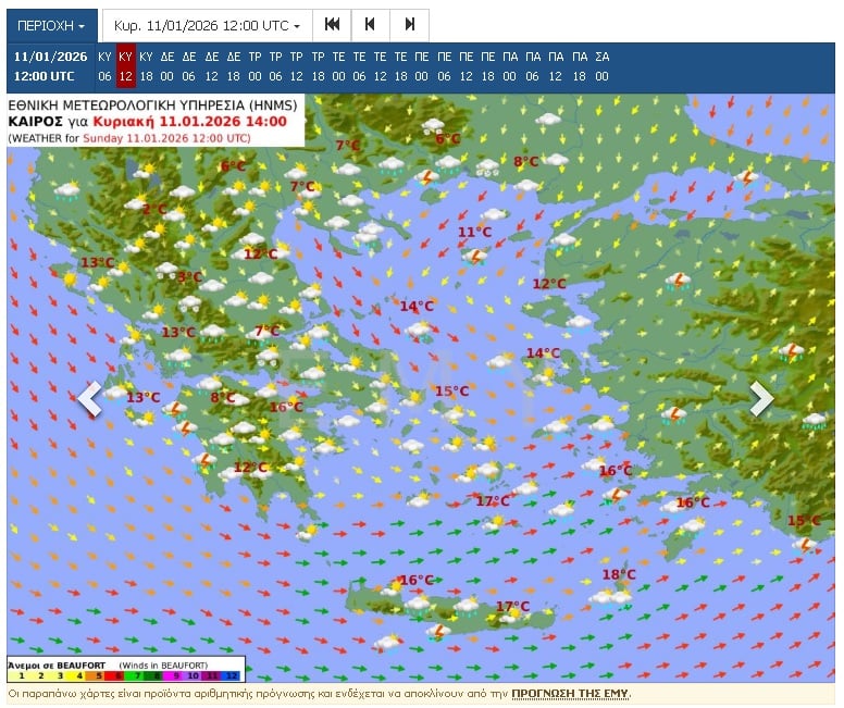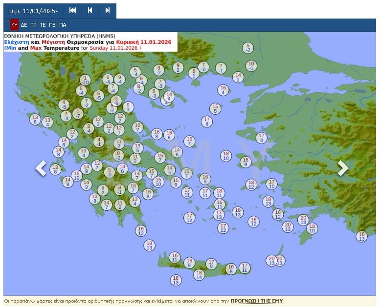 Θερμοκρασία: Από 08 έως 18 βαθμούς Κελσίου. Στα βόρεια 2 με 3 βαθμούς χαμηλότερη.