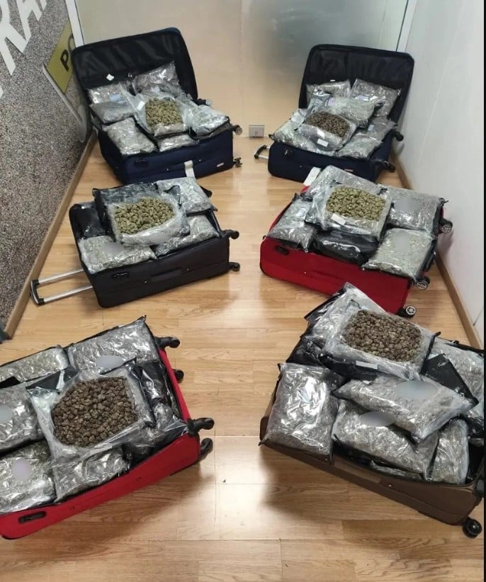 Από τον έλεγχο που πραγματοποιήθηκε στις αποσκευές τους, συνολικά κατελήφθησαν να έχουν αποκρύψει σε νάιλον συσκευασίες εντός των αποσκευών τους, 72 κιλά και 700 γραμμάρια ακατέργαστης κάνναβης υδροπονικής καλλιέργειας (skunk).