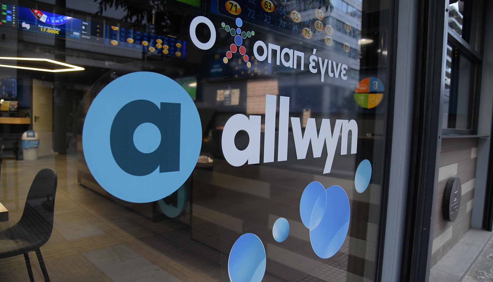 Το brand της Allwyn είναι πλέον άμεσα ορατό σε διάφορα σημεία επαφής με τους πελάτες (π.χ. λογότυπο, πινακίδες, διαδικτυακές σελίδες κλπ.).