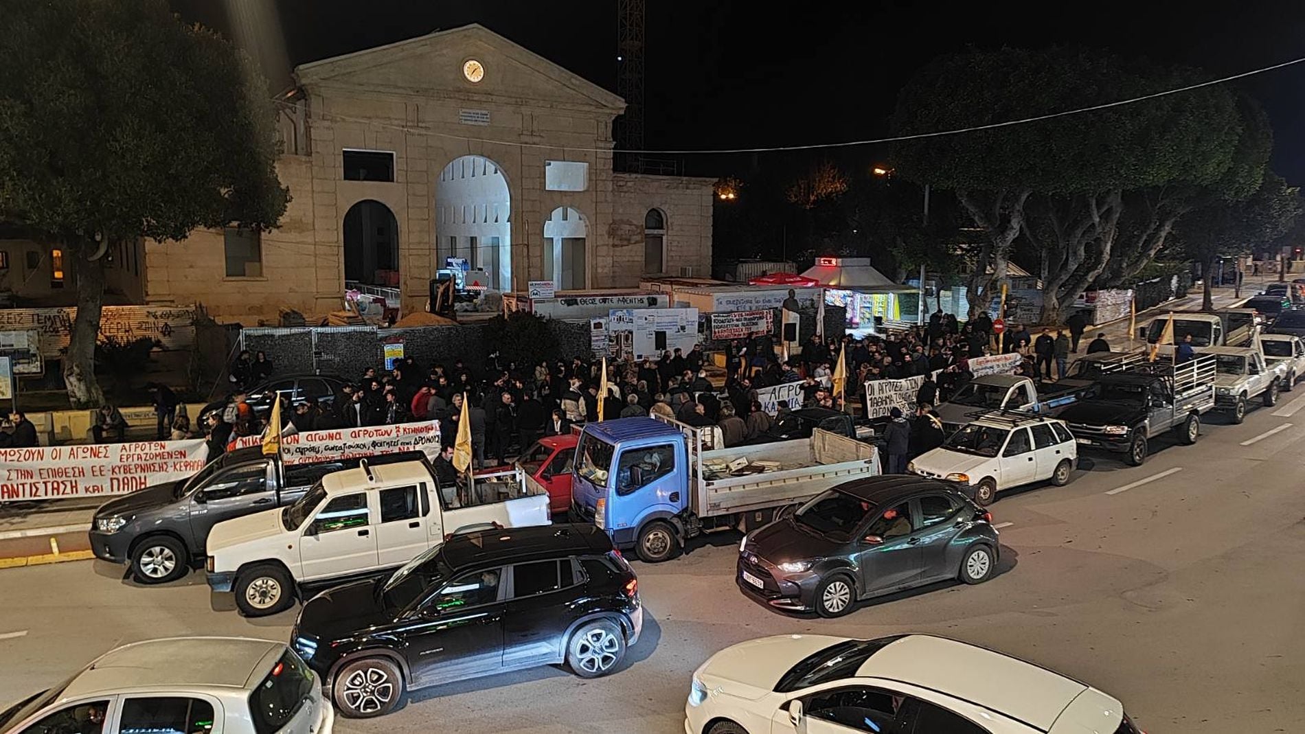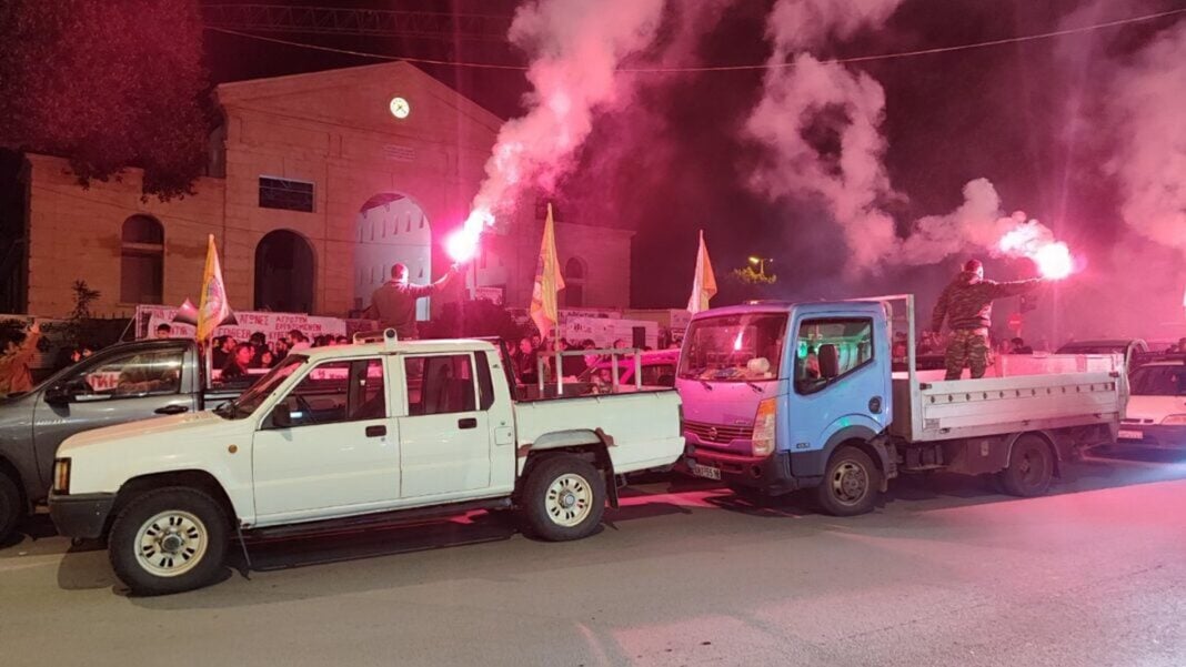Σύμφωνα με το creta24, οι αγροτοκτηνοτρόφοι από διάφορες περιοχές του νομού συγκεντρώθηκαν λίγο μετά τις 5 το απόγευμα στο μπλόκο στα Μεγάλα Χωράφια, το οποίο αποτέλεσε επί εβδομάδες σημείο αναφοράς των κινητοποιήσεών τους. Από εκεί ξεκίνησε μηχανοκίνητη πορεία με αγροτικά οχήματα και τρακτέρ, που κινήθηκε οργανωμένα προς το κέντρο των Χανιά, στέλνοντας ηχηρό μήνυμα διαμαρτυρίας.