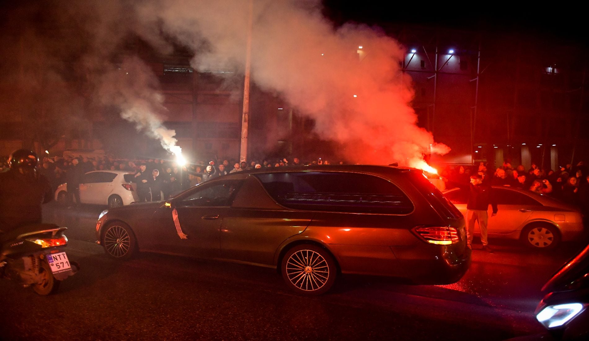 Λίγο μετά τις 19:30, το «ασπρόμαυρο» κομβόι που μετέφερε τις σορούς των αδικοχαμένων φιλάθλων του ΠΑΟΚ, θυμάτων του θανατηφόρου τροχαίου στη Ρουμανία, έφτασε στην Τούμπα.