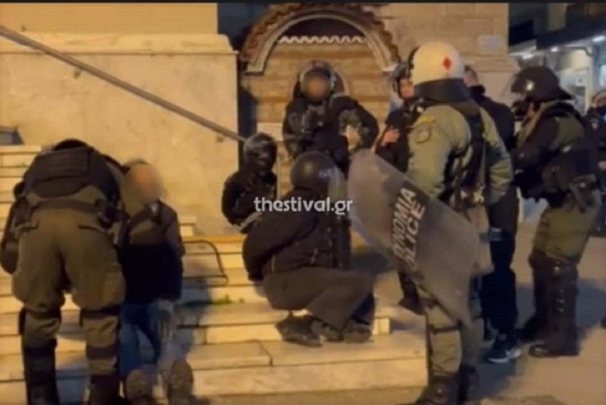 Κατά τη διέλευση της πορείας από την οδό Εγνατία, στο ύψος του Ι.Ν.Παναγίας της Δεξιάς, ομάδα ατόμων, η πλειονότητα των οποίων με καλυμμένα τα χαρακτηριστικά των προσώπων τους, φέροντας ξύλινα κοντάρια επιτέθηκαν σε βάρος των αστυνομικών δυνάμεων που βρίσκονταν σε διατεταγμένη υπηρεσία, με αποτέλεσμα τον τραυματισμό τριών αστυνομικών και τη σύλληψη τεσσάρων εκ των επιτιθέμενων.