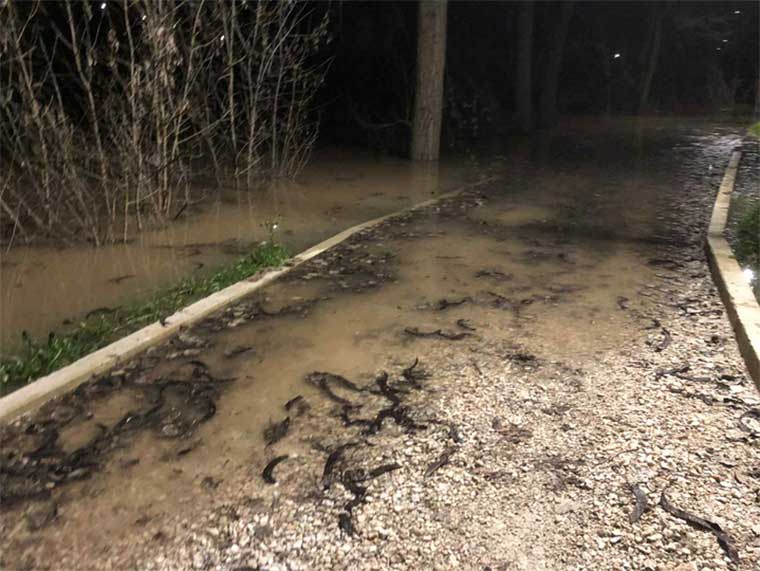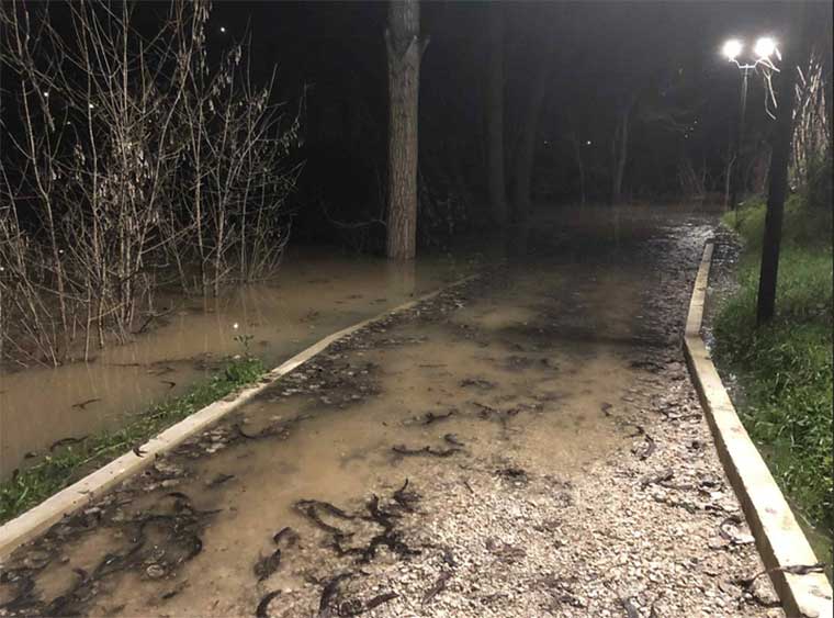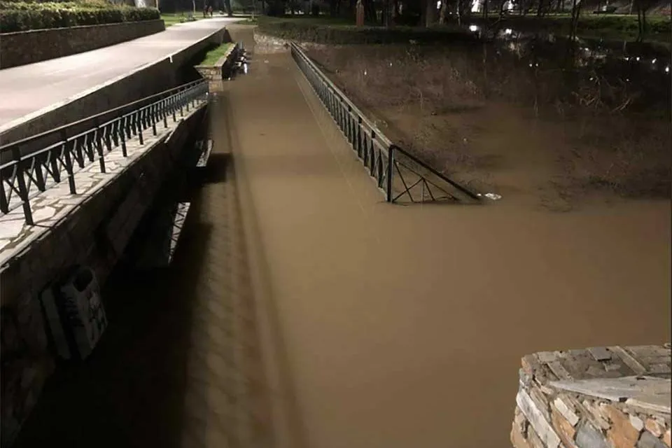Όπως αποτυπώνεται στις φωτογραφίες και το βίντεο, της “¨Ελευθερίας” τα νερά έχουν απλωθεί έξω από την κοίτη, καλύπτοντας τμήματα του πεζόδρομου δίπλα στο ποτάμι, με λάσπες και φερτά υλικά να κάνουν τη διέλευση δύσκολη για τους πεζούς.