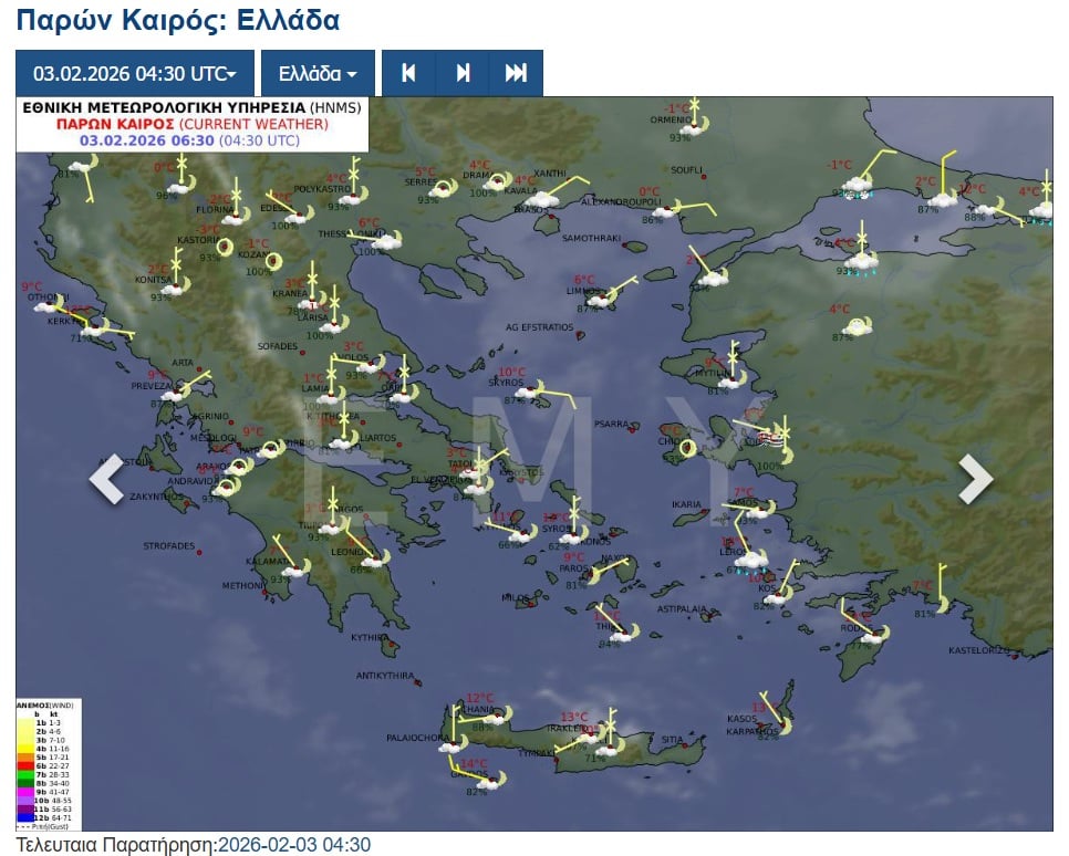 Θερμοκρασία: Από 03 έως 12 βαθμούς Κελσίου. Στη Θράκη 3 με 4 βαθμούς χαμηλότερη.
