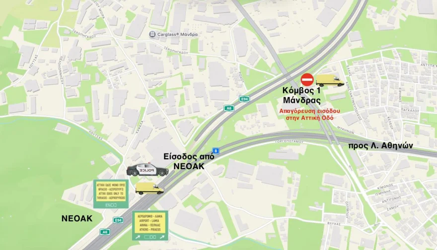 Ειδικότερα, έως τότε στο ρεύμα προς Αεροδρόμιο, από την Ελευσίνα έως το Αιγάλεω, θα παραμείνουν κλειστοί οι κλάδοι εισόδου από τους κόμβους Μάνδρας, Μαγούλας, Ασπροπύργου και Αιγάλεω.
