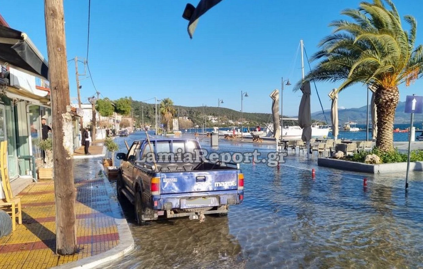 Στις ακτές της Στυλίδας και της Γλύφας, όμως, οι σχεδόν θυελλώδεις άνεμοι είχαν ως αποτέλεσμα η θάλασσα να βγει στη στεριά, όπως μπορείτε να δείτε και στα παρακάτω βίντεο: