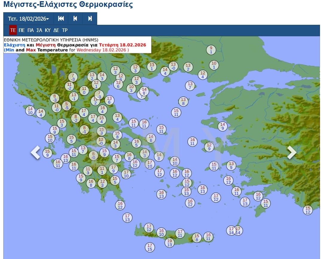 Θερμοκρασία: Από 03 έως 13 βαθμούς Κελσίου. Στη δυτική Μακεδονία 3 με 4 βαθμούς χαμηλότερη.