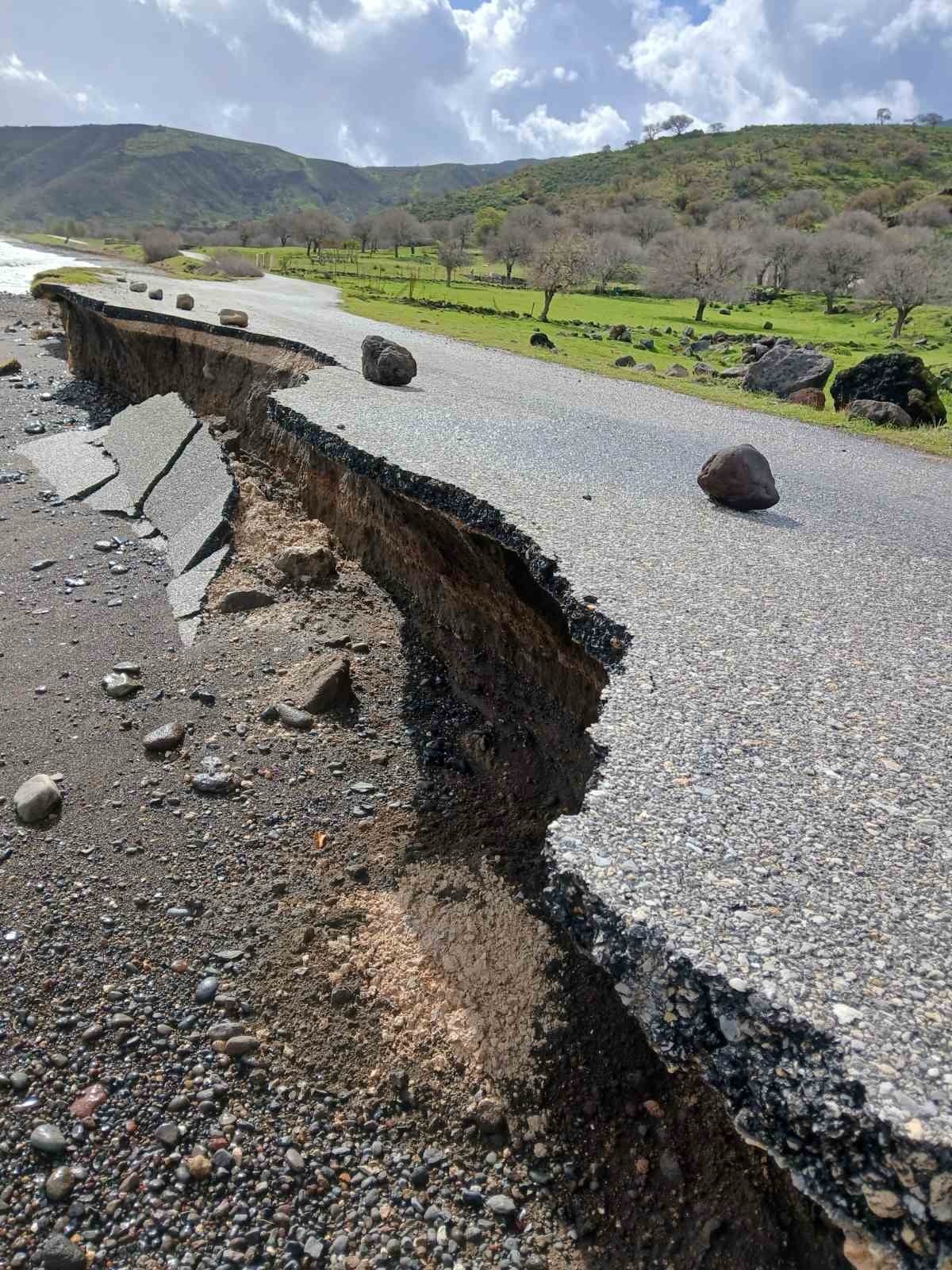 – Καταστροφή και υποχώρηση οδοστρώματος στο 1ο χλμ. του κοινοτικού δικτύου Μανδρακίου – Πάλλων