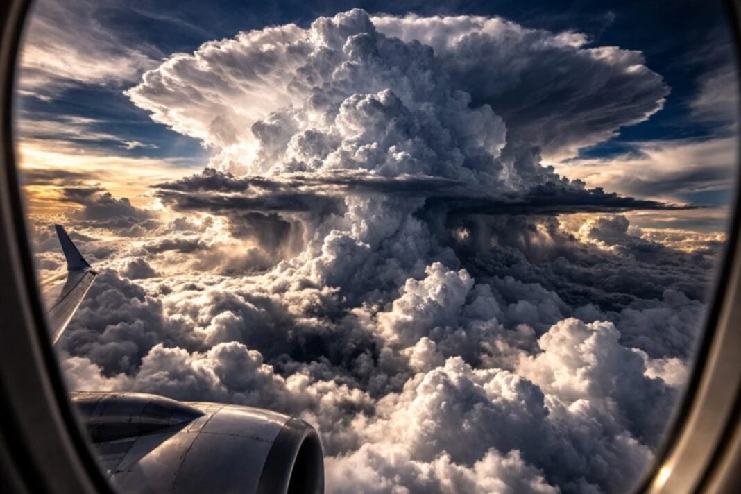 Το πιο εντυπωσιακό απ’ όλα είναι ότι σε πολλές περιπτώσεις ισχυρών καταιγίδων, όπως σήμερα, ο παρατηρητής στο έδαφος δεν διακρίνει οπτικά την πλήρη κατακόρυφη ανάπτυξη του cumulonimbus, διότι αυτό καλύπτεται από εκτεταμένα στρώματα μεσαίων και χαμηλών νεφώσεων. Ωστόσο, πάνω από το νεφικό αυτό “πέπλο” αναπτύσσεται η κύρια καταιγιδοφόρος δομή, η οποία σε ιδιαίτερα έντονες καταιγίδες μπορεί να φτάσει ακόμη και τα 35.000 – 40.000 πόδια (περίπου 10-12 km), αποκτώντας σημαντική κατακόρυφη έκταση και δυναμική ένταση».
