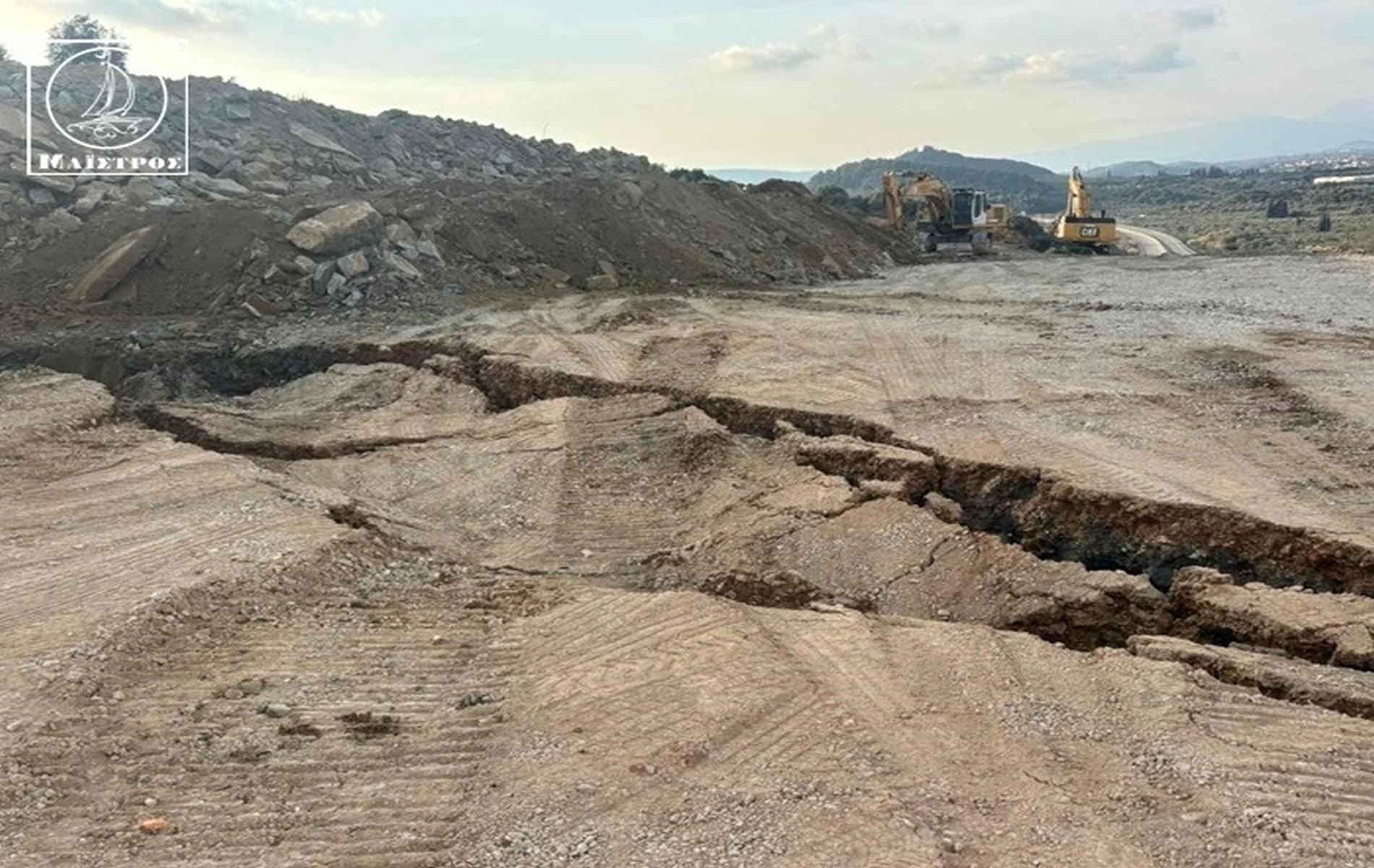 Οι εικόνες από το σημείο δείχνουν ξεκάθαρα τη γεωτεχνική αστάθεια. Βαθιές ρηγματώσεις, μεγάλες μετατοπίσεις χώματος και βαριά μηχανήματα να δουλεύουν σε κοντινή απόσταση υπό συνθήκες υψηλού ρίσκου.