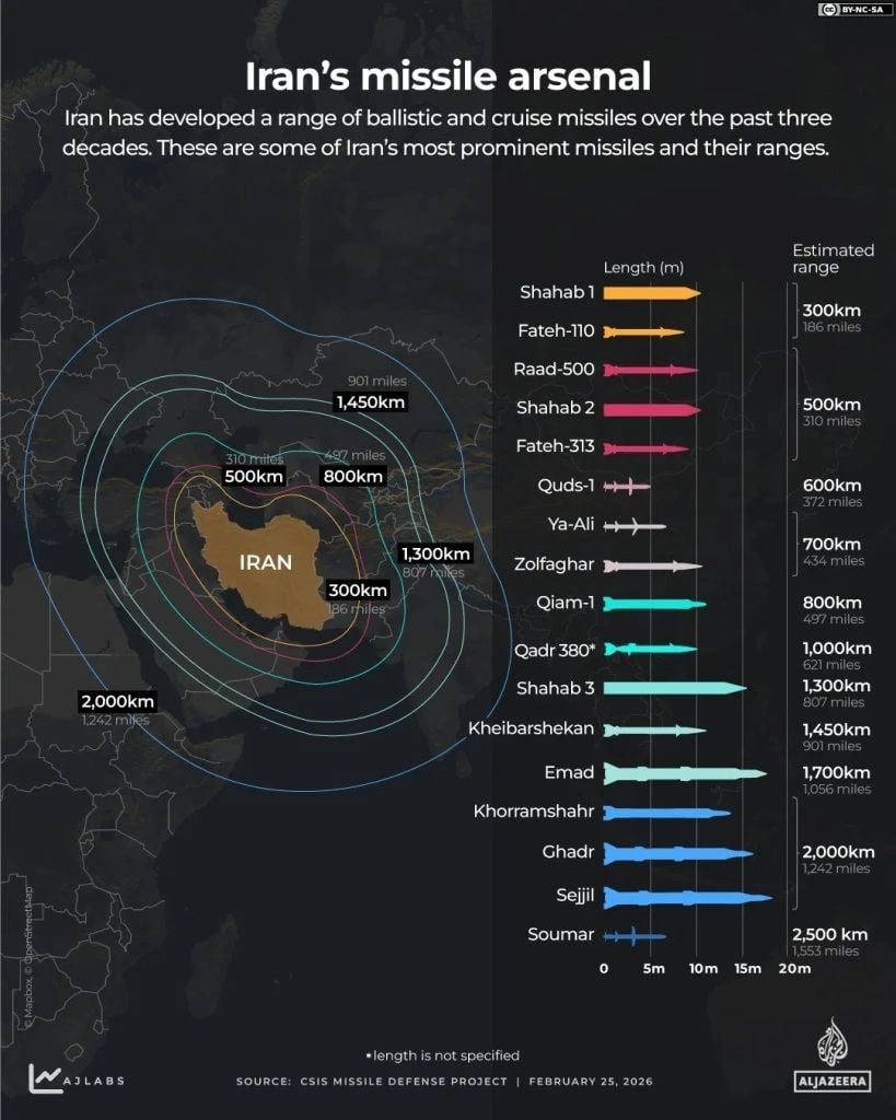 Το βεληνεκές του εκτιμάται στα περίπου 2.000 χιλιόμετρα, καλύπτοντας έτσι μεγάλο μέρος της Μέσης Ανατολής και φτάνοντας μέχρι ορισμένες περιοχές της νοτιοανατολικής Ευρώπης.