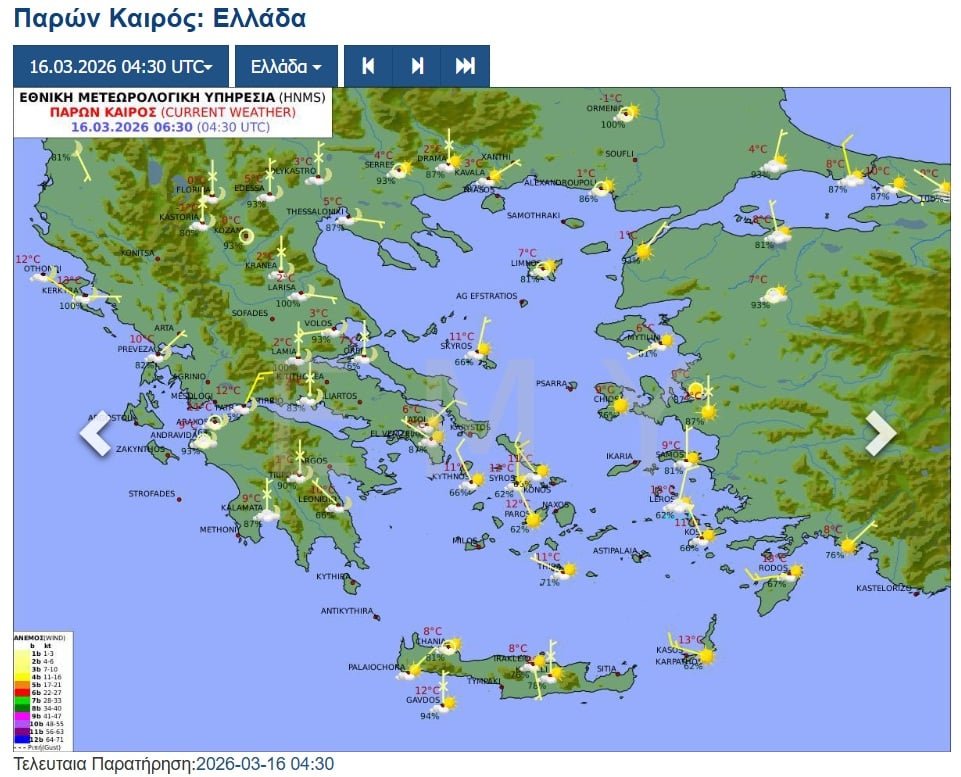 Θερμοκρασία: Από 03 έως 16 βαθμούς Κελσίου. Στη δυτική Μακεδονία 2 με 4 βαθμούς χαμηλότερη.