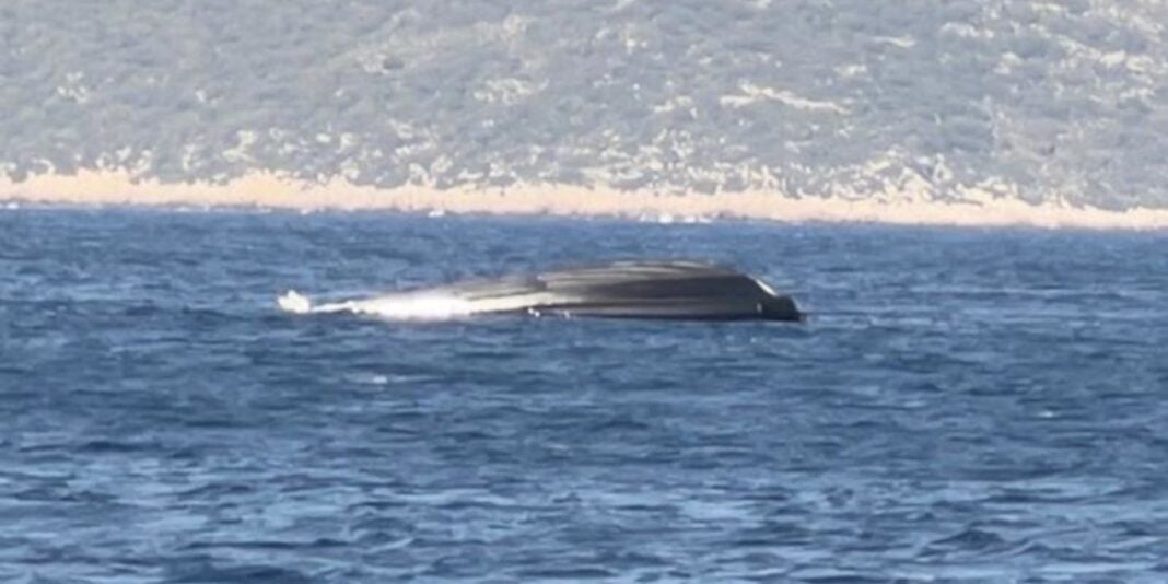 Το βίντεο που κυκλοφόρησε δείχνει το σκάφος να είναι ημιβυθισμένο και να χτυπά επανειλημμένα στα βράχια πριν εξαφανιστεί κάτω από την επιφάνεια της θάλασσας.