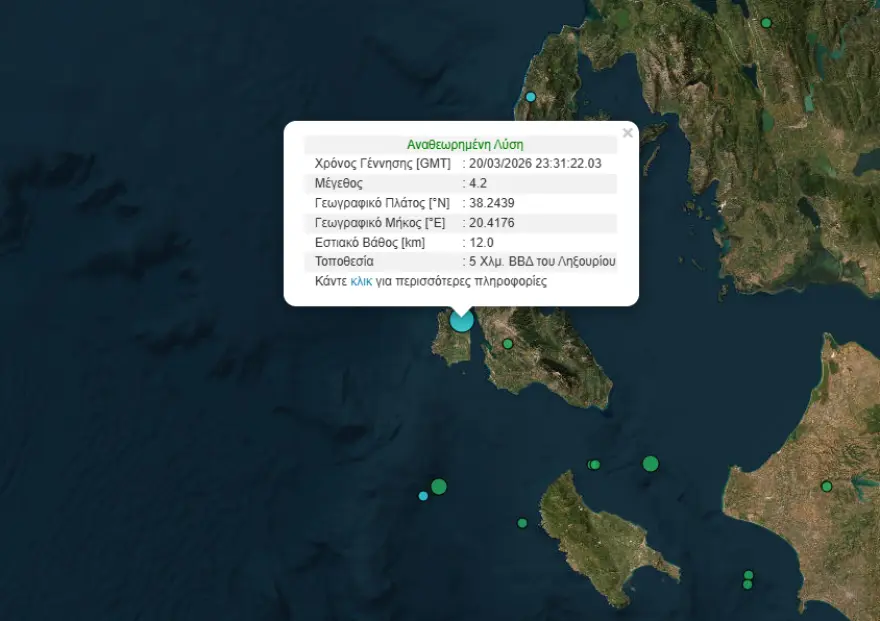 Σεισμός μεγέθους 4.2 Ρίχτερ σημειώθηκε κοντά στο Ληξούρι στην Κεφαλονιά.