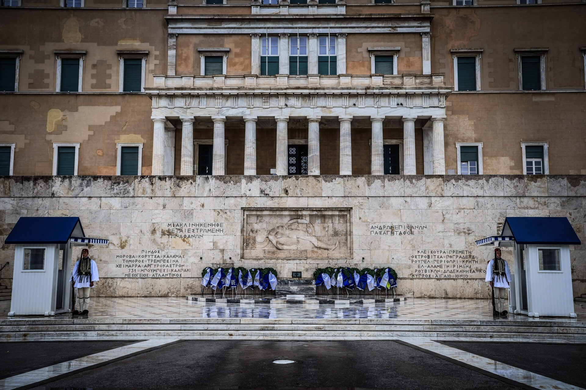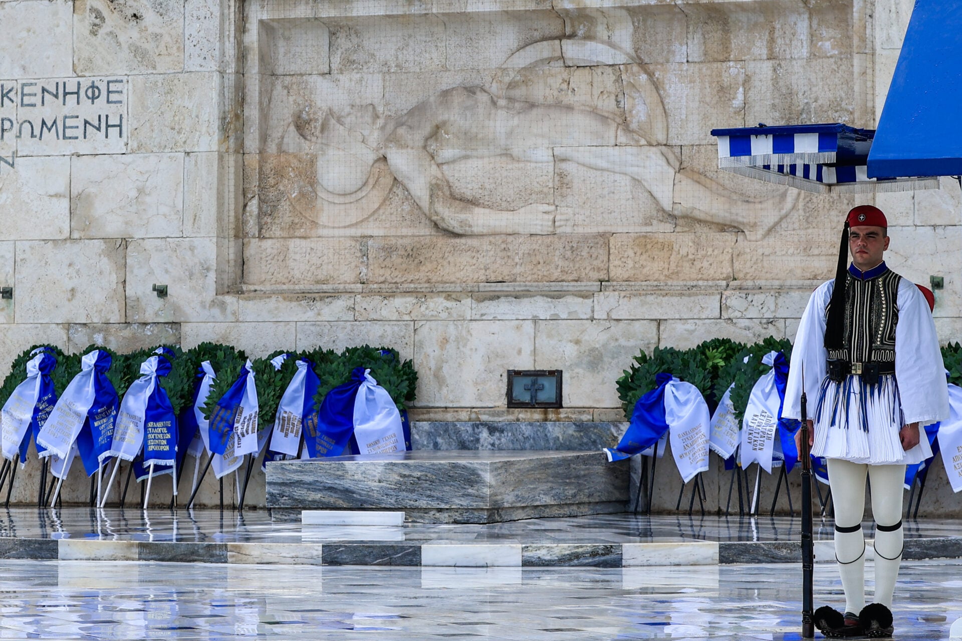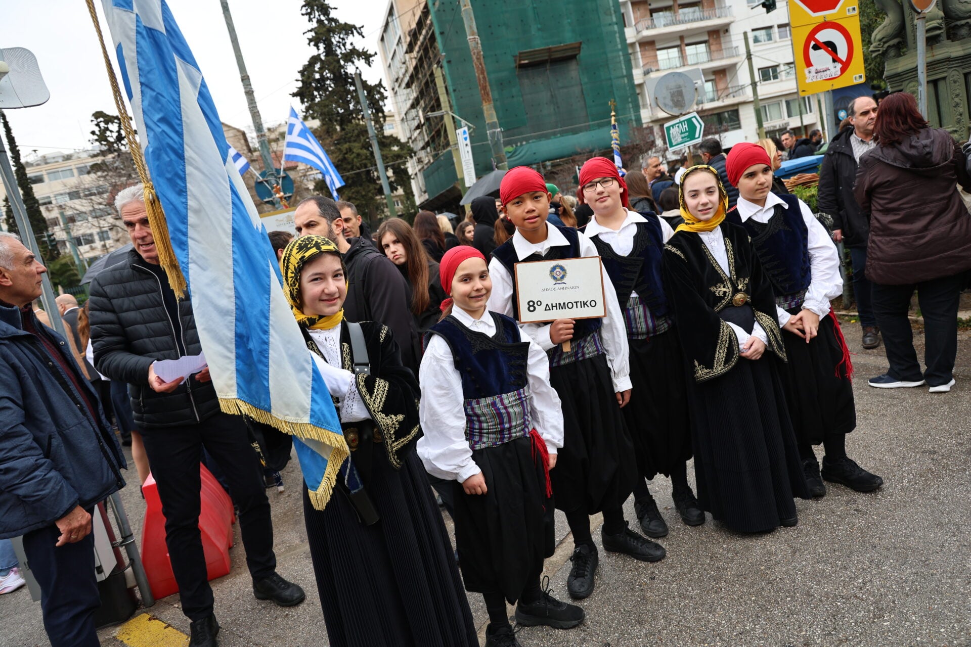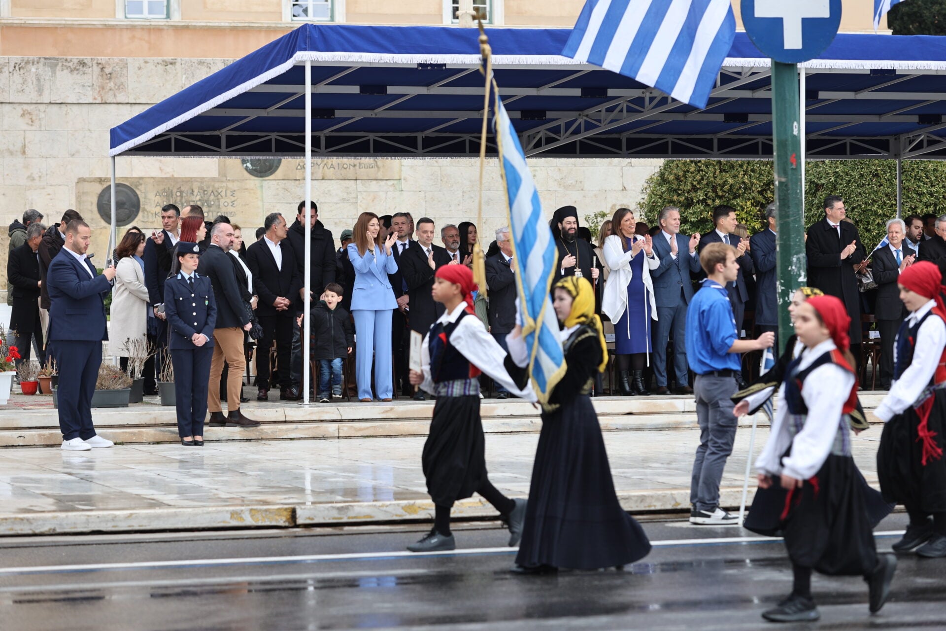 Παρά τις καιρικές συνθήκες, η συμμετοχή είναι μαζική, ενώ από νωρίς στο Σύνταγμα βρέθηκαν εκπρόσωποι του πολιτικού κόσμου, αρκετοί εκ των οποίων επέλεξαν εμφανίσεις στα χρώματα της γαλανόλευκης, δίνοντας συμβολικό τόνο στην εκδήλωση.