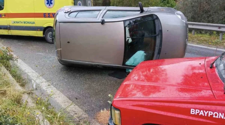 Τροχαίο σημειώθηκε το μεσημέρι του Σαββάτου στην Αρτέμιδα, όταν η οδηγός έχασε για άγνωστο λόγο τον έλεγχο του οχήματός της. Το αυτοκίνητο πέρασε πάνω από το διαχωριστικό και κατέληξε στο αντίθετο ρεύμα κυκλοφορίας, αναποδογυρίζοντας στη μέση του δρόμου.