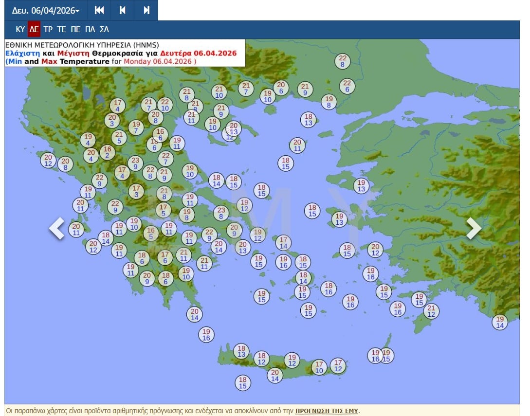 Η θερμοκρασία θα σημειώσει μικρή άνοδο. Θα φτάσει τους 19 με 21 βαθμούς και κατά τόπους στα ηπειρωτικά τους 22 με 23 βαθμούς Κελσίου.