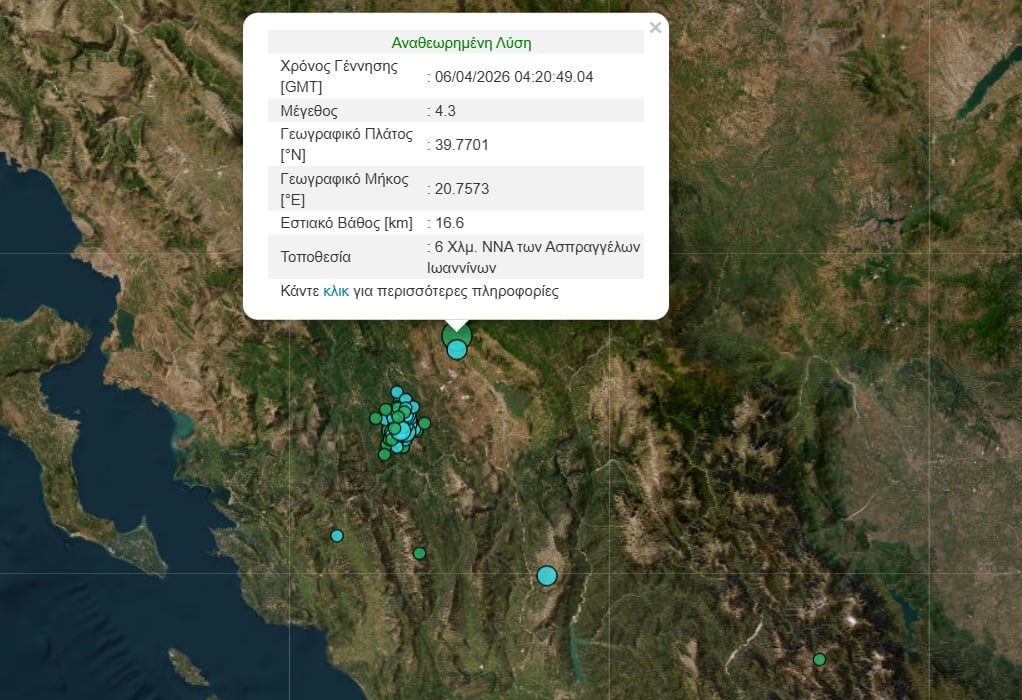 Ισχυρός σεισμός 4,3 Ρίχτερ στα Γιάννενα – Τι λέει ο Ευθύμιος Λέκκας για το φαινόμενο
