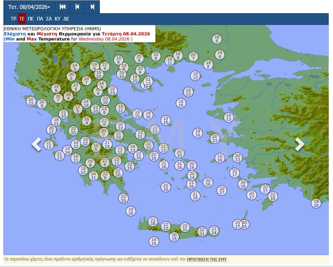 Θερμοκρασία: Από 08 έως 20 βαθμούς Κελσίου. Στη δυτική Μακεδονία 2 με 3 βαθμούς χαμηλότερη.