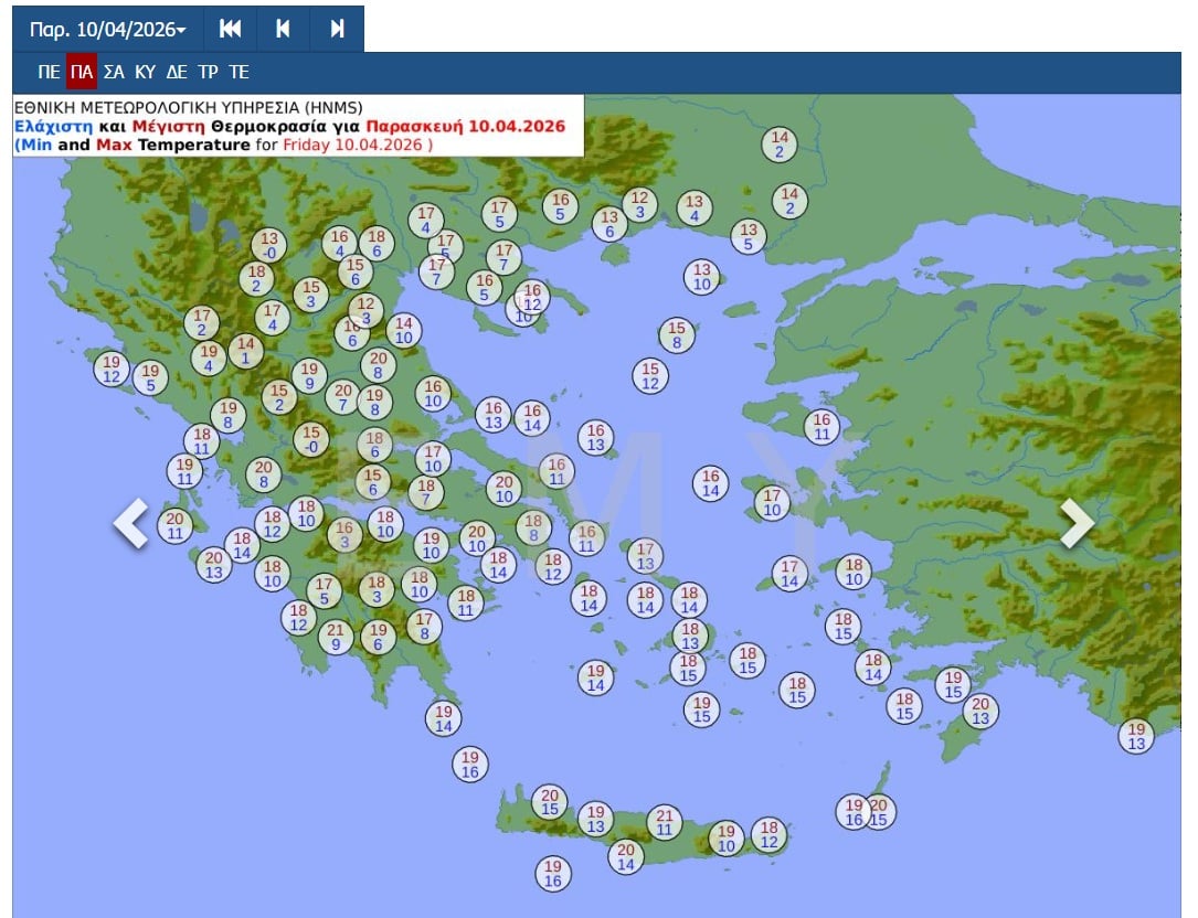 Θερμοκρασία: Από 12 έως 17 με 18 και στην Κρήτη τοπικά 19 με 20 βαθμούς Κελσίου.