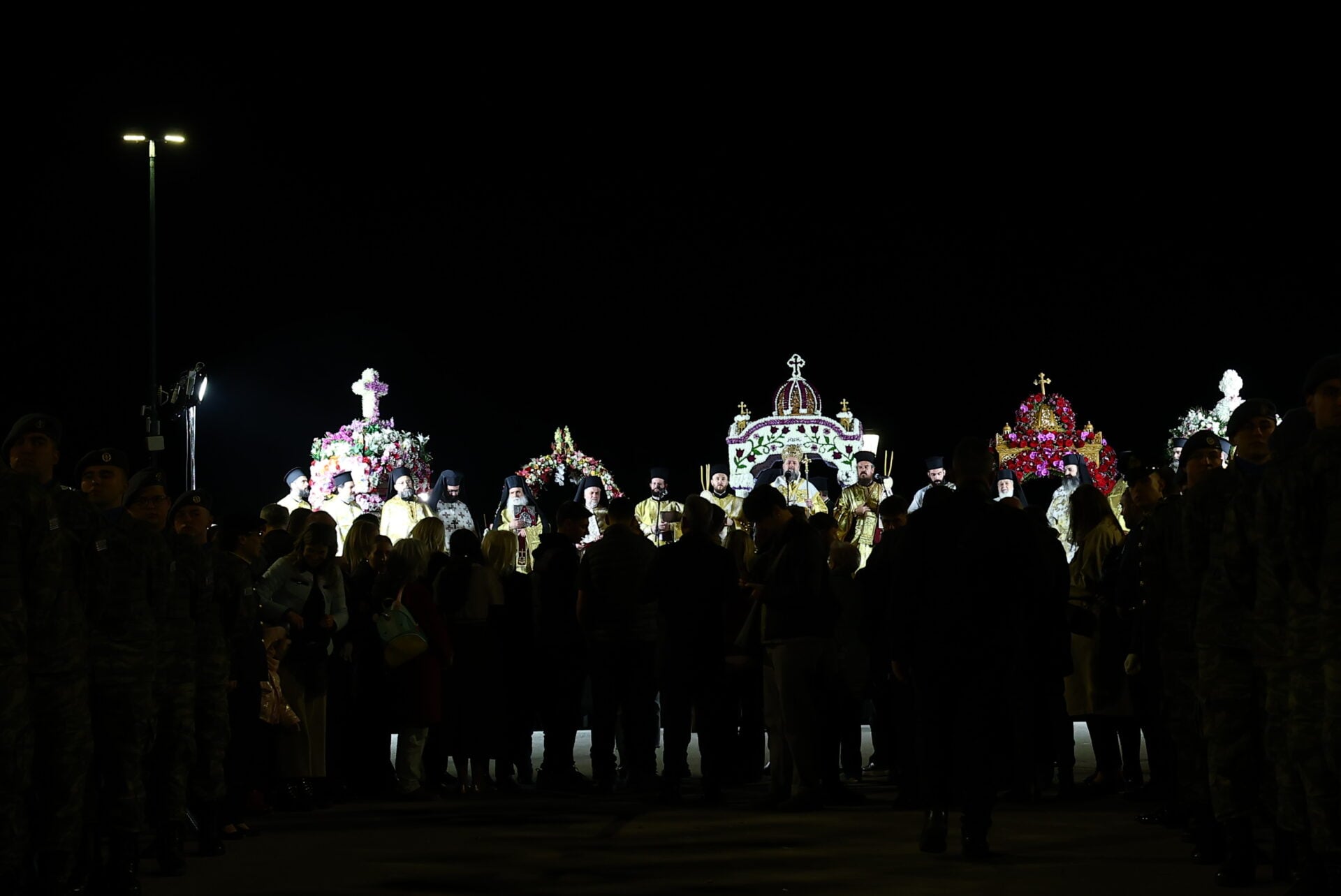 Σε ένα απέραντο σκηνικό κατάνυξης και θρησκευτικού δέους μετατράπηκε το βράδυ της Μεγάλης Παρασκευής το ιστορικό κέντρο της Θεσσαλονίκης. Χιλιάδες πιστοί κατέκλυσαν κάθε γωνιά της πόλης, ακολουθώντας τις περιφορές των Επιταφίων που κατέληξαν στην πλατεία Αριστοτέλους, όπου για τρίτη συνεχή χρονιά αναβίωσε ένας θεσμός που τείνει να γίνει η πνευματική «καρδιά» της συμπρωτεύουσας, το αντάμωμα πέντε Επιταφίων από τους κεντρικούς ναούς της πόλης.